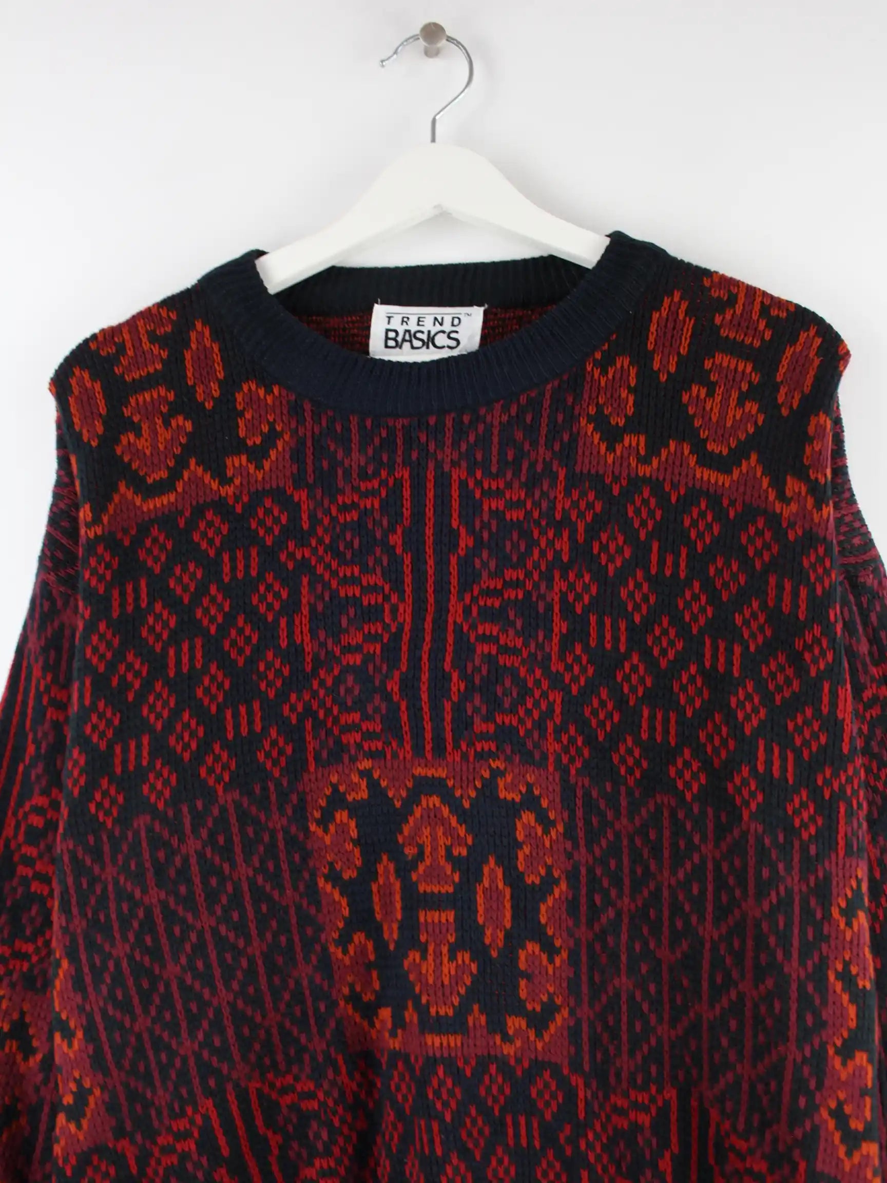 Vintage Pullover in Größe M aus den 90'ern. Er ist aus Acryl gemacht und in Rot vorrätig.