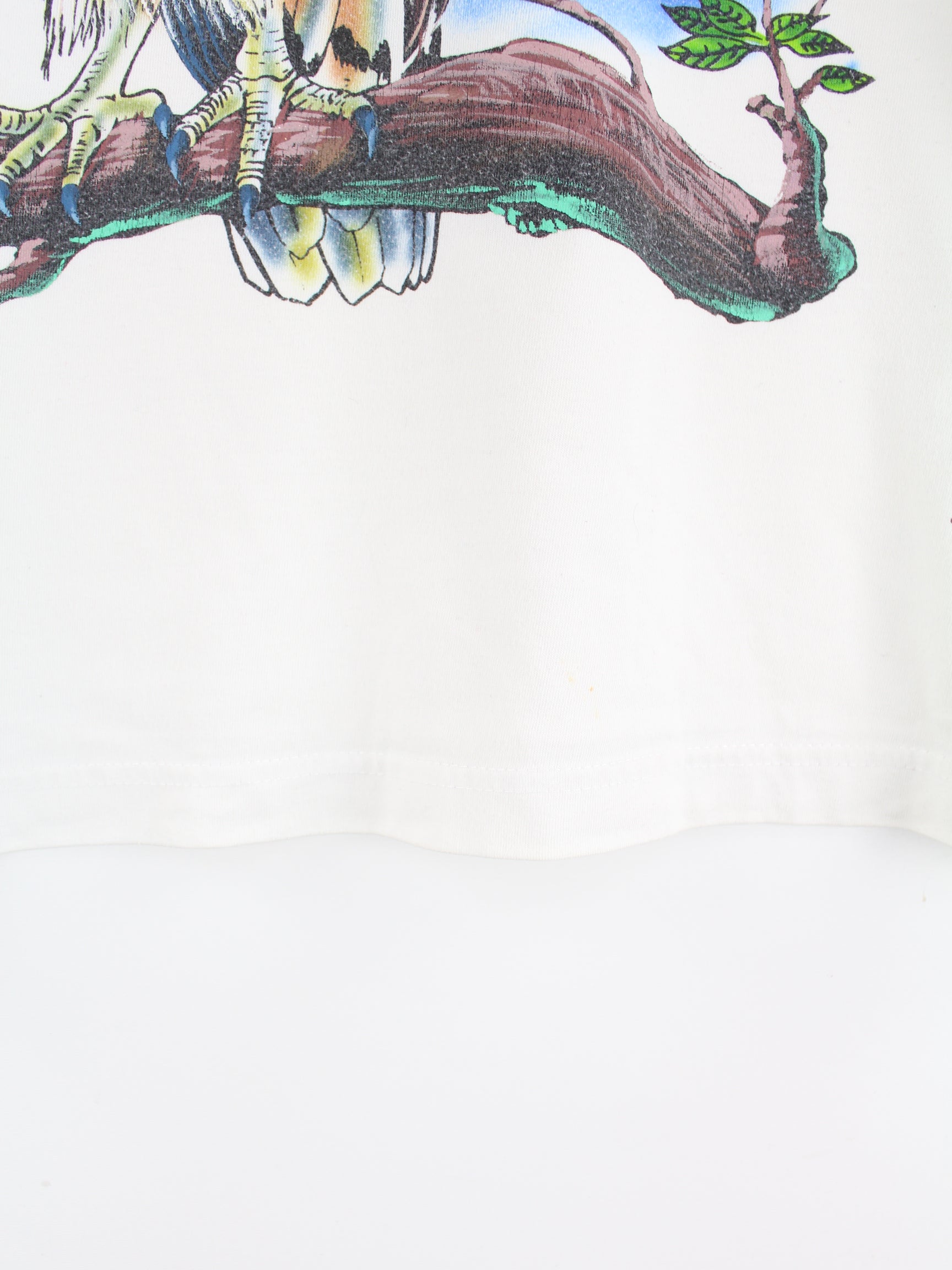 Vintage T-Shirt in Größe L aus den 90'ern. Es ist aus Baumwolle gemacht und in Weiß in Stock. Mit seltenem Eagle Print.