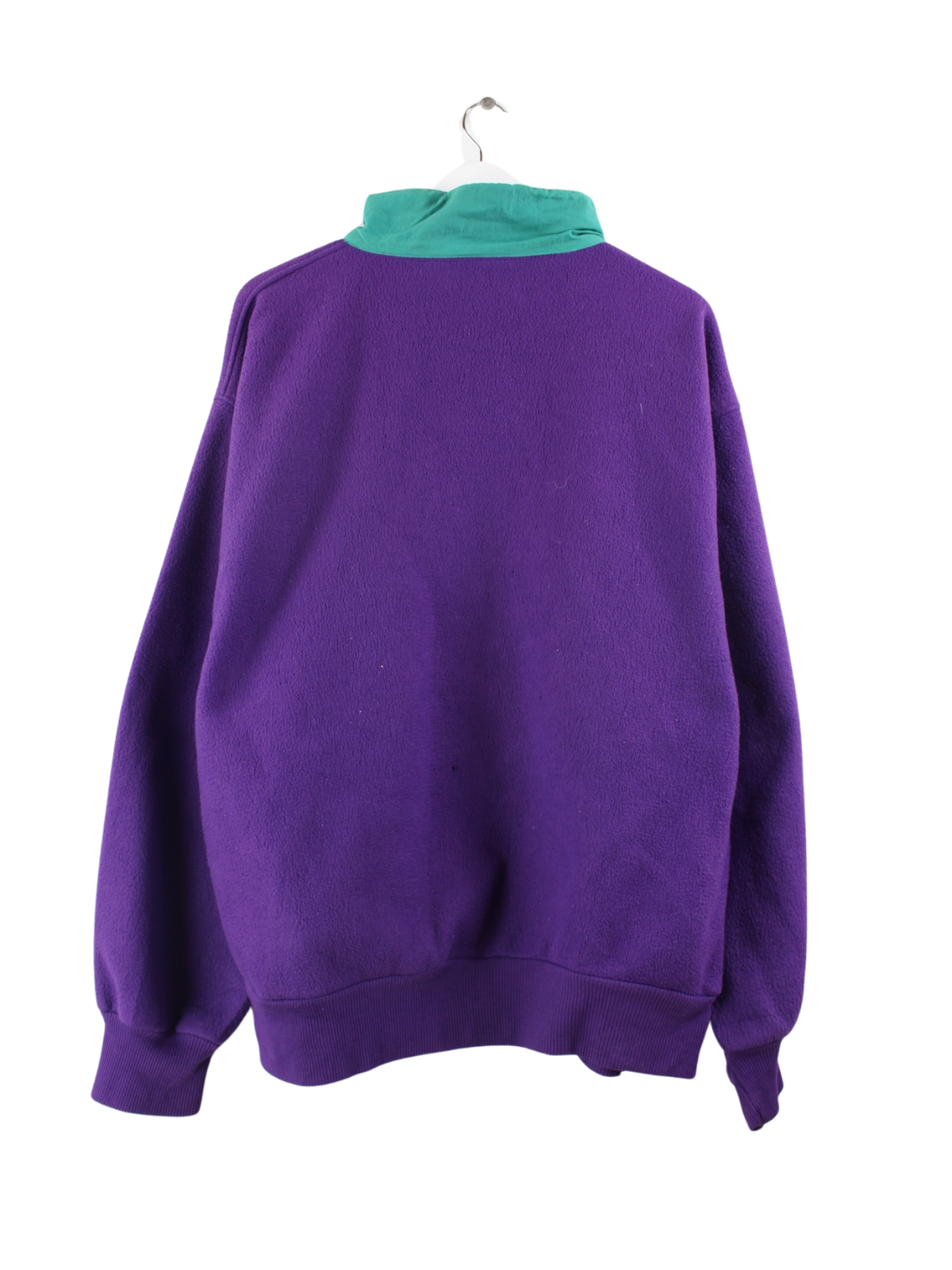Lilafarbener Vintage Sweater mit halbem Reißverschluß aus den 90'ern in Größe XXL. Er ist aus gemütlichem Fleece produziert und in gutem Zustand im Bestand.