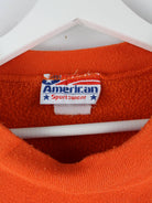 Vintage Sweater in Größe L aus den 90'ern. Er ist aus einer Baumwollmischung hergestellt und in Orange zu haben. Mit seltenem Indians Print.