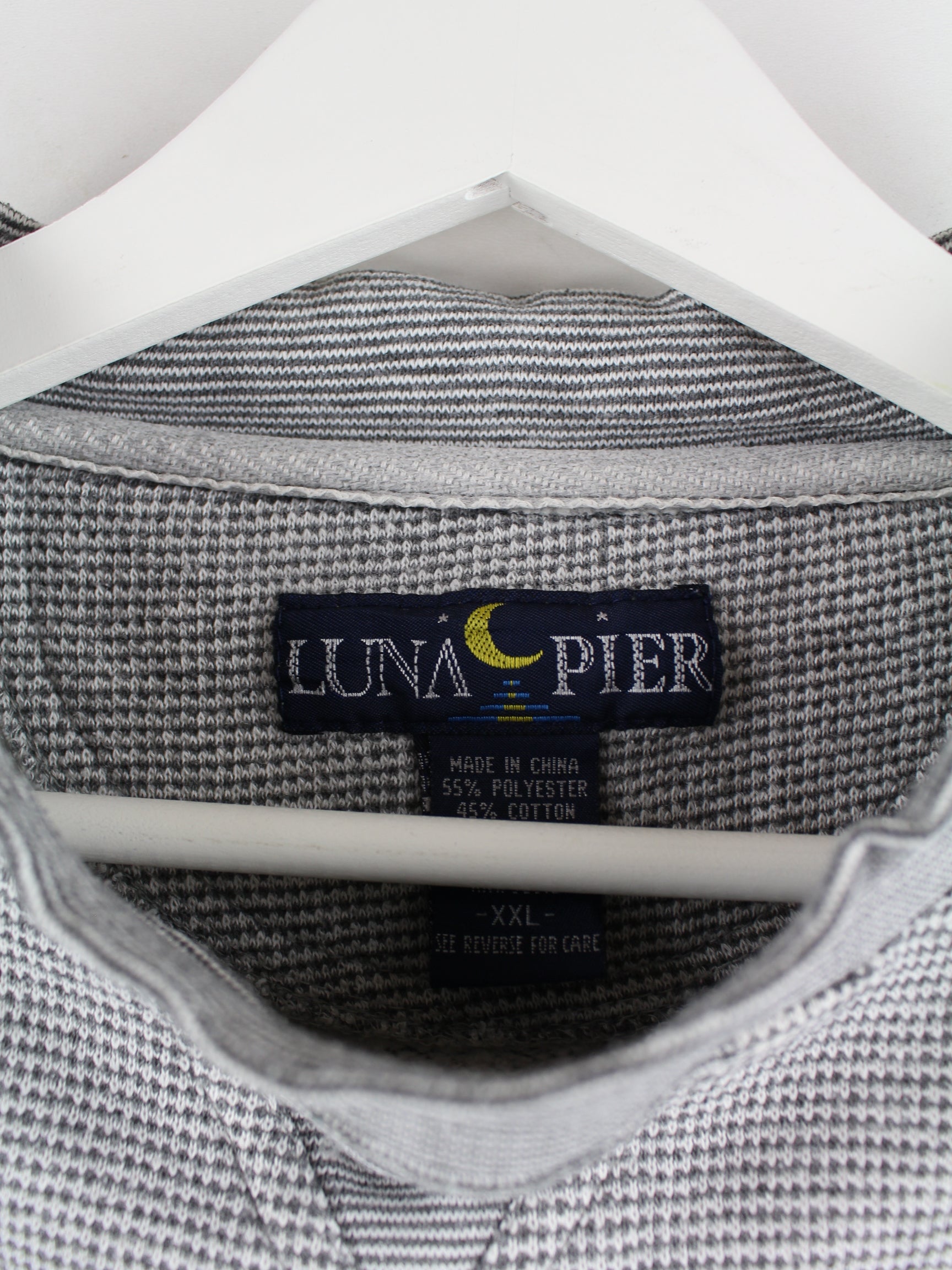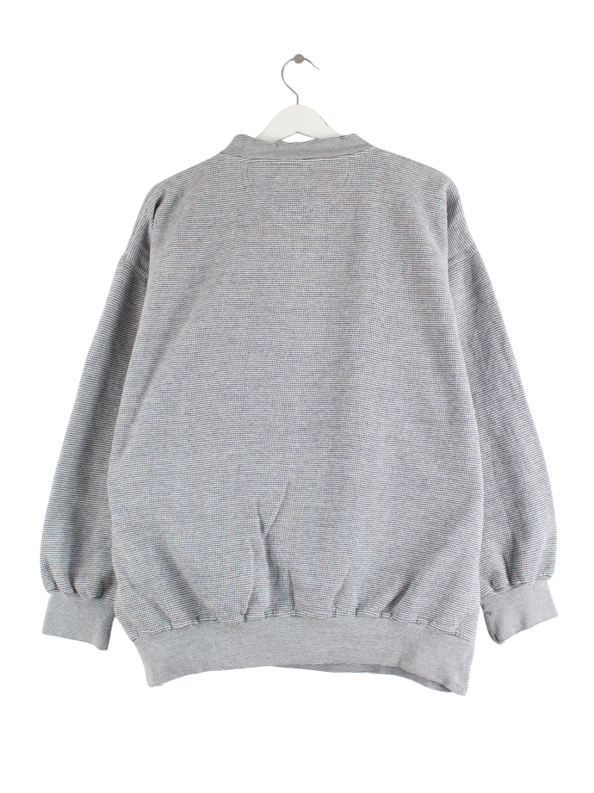 Grauer Vintage Sweater mit Stick aus den 90'ern in Größe XL. Er ist aus einer Baumwollmischung gemacht und in gutem Zustand auf Lager.
