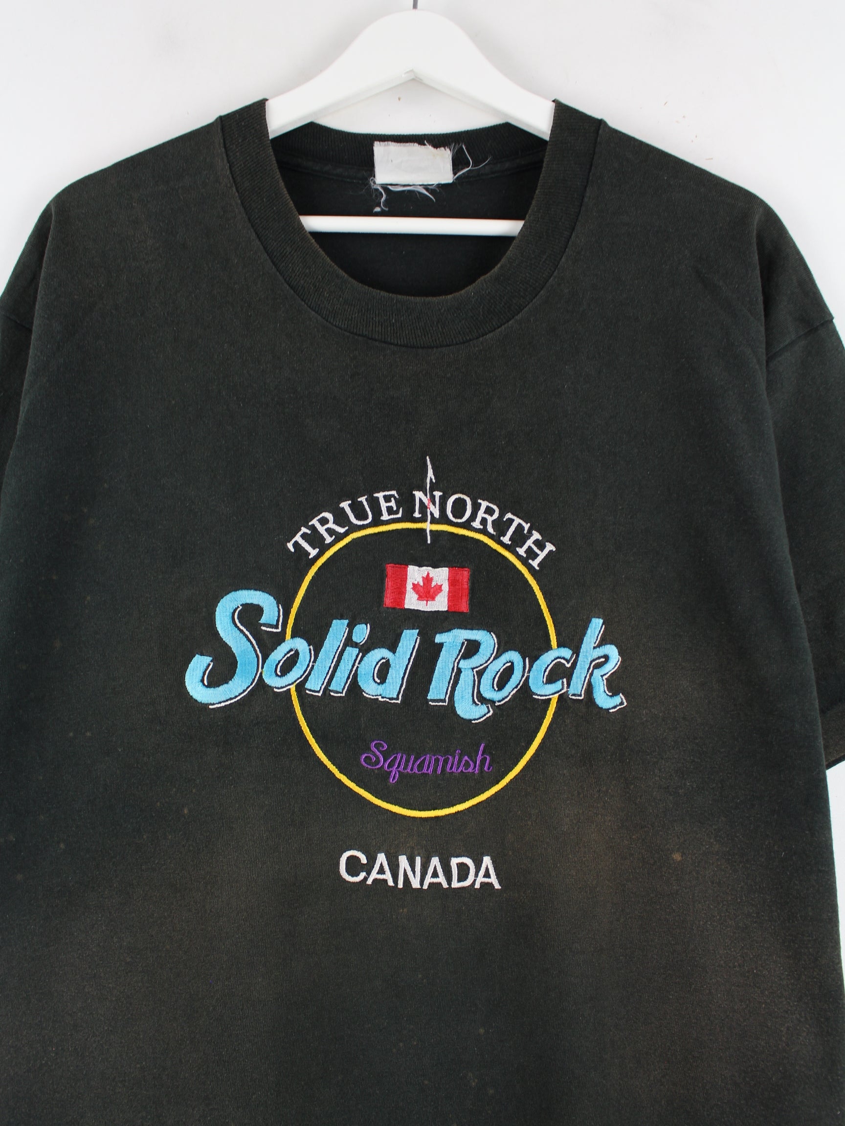 Vintage 90s Solid Rock Embroidered Single Stitch T-Shirt Schwarz XL