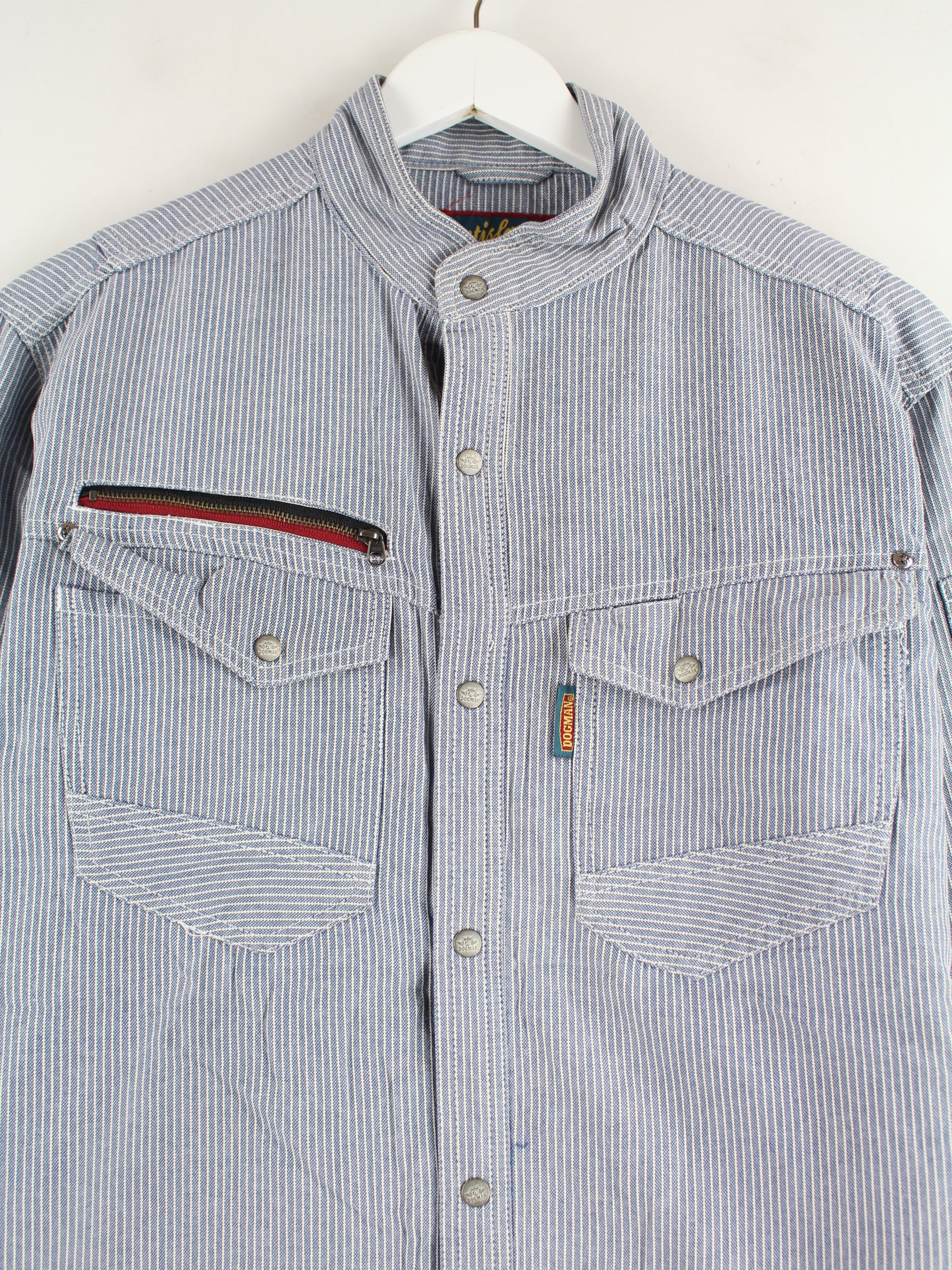 Vintage Freizeit Hemd in Größe M aus den 90'ern. Es ist aus einer Baumwollmischung hergestellt und in Grau in Stock.