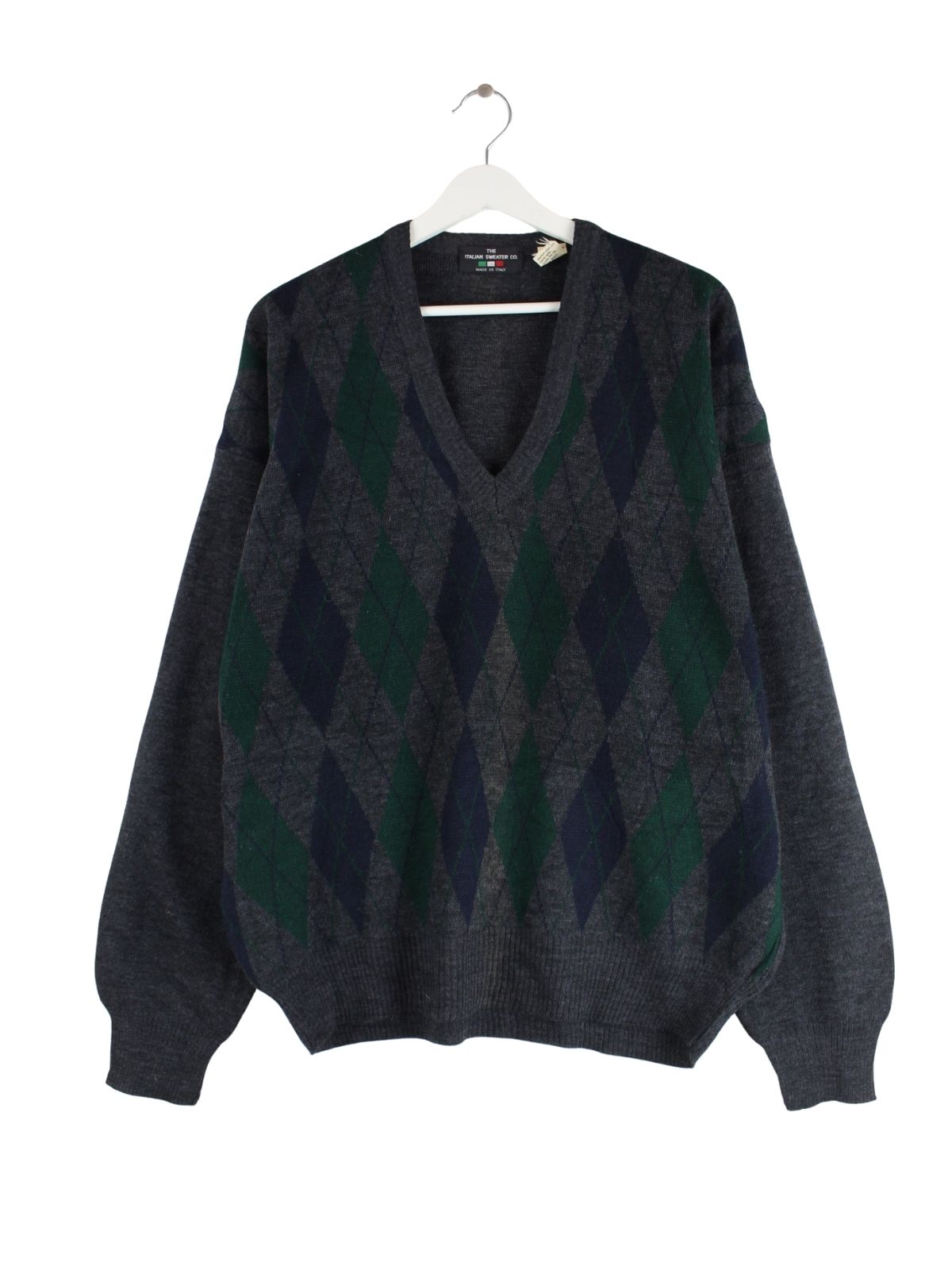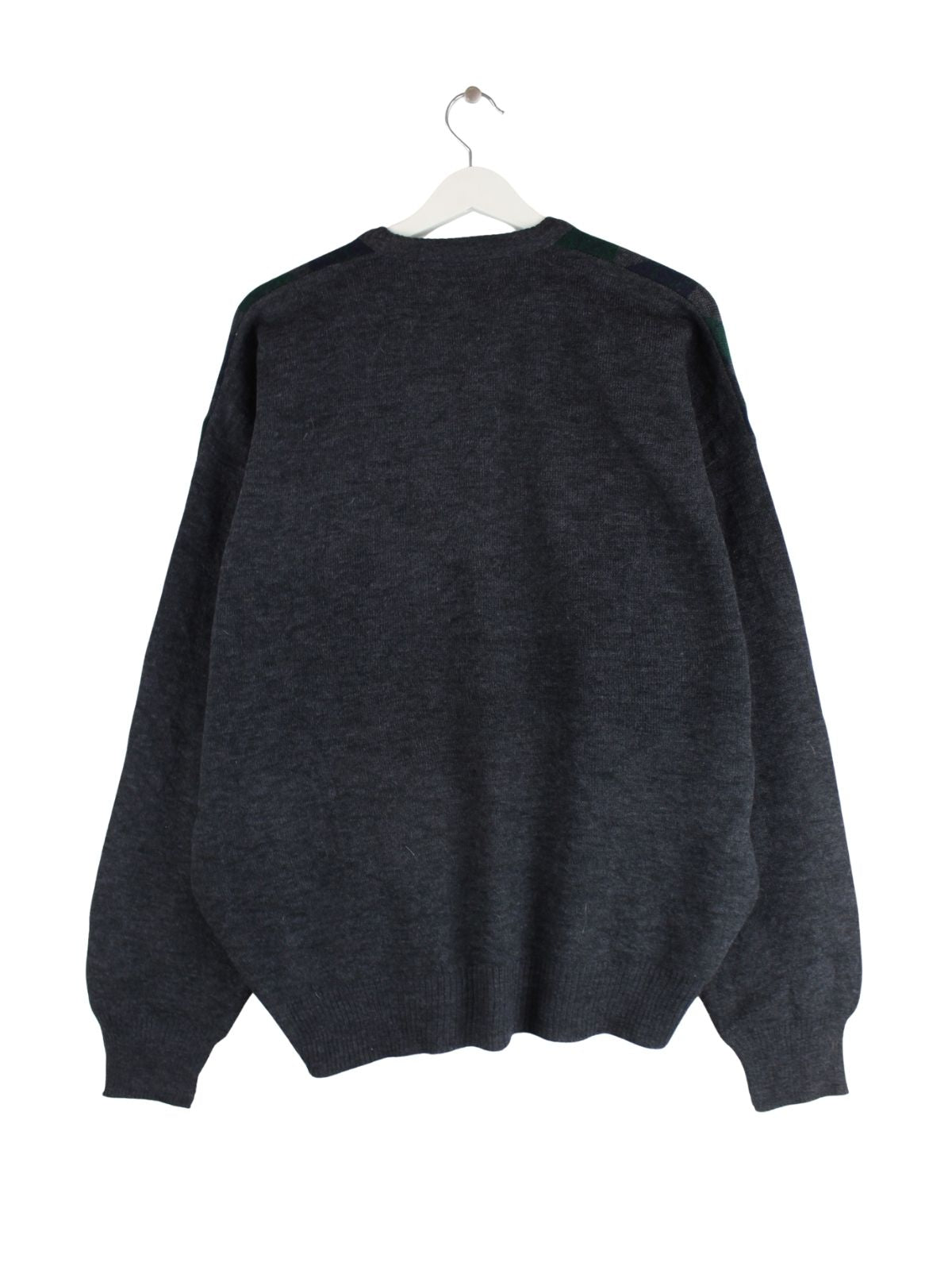 Vintage Pullover in Größe XL aus den 90'ern. Er ist aus Acryl gefertigt und in Grau zu haben.