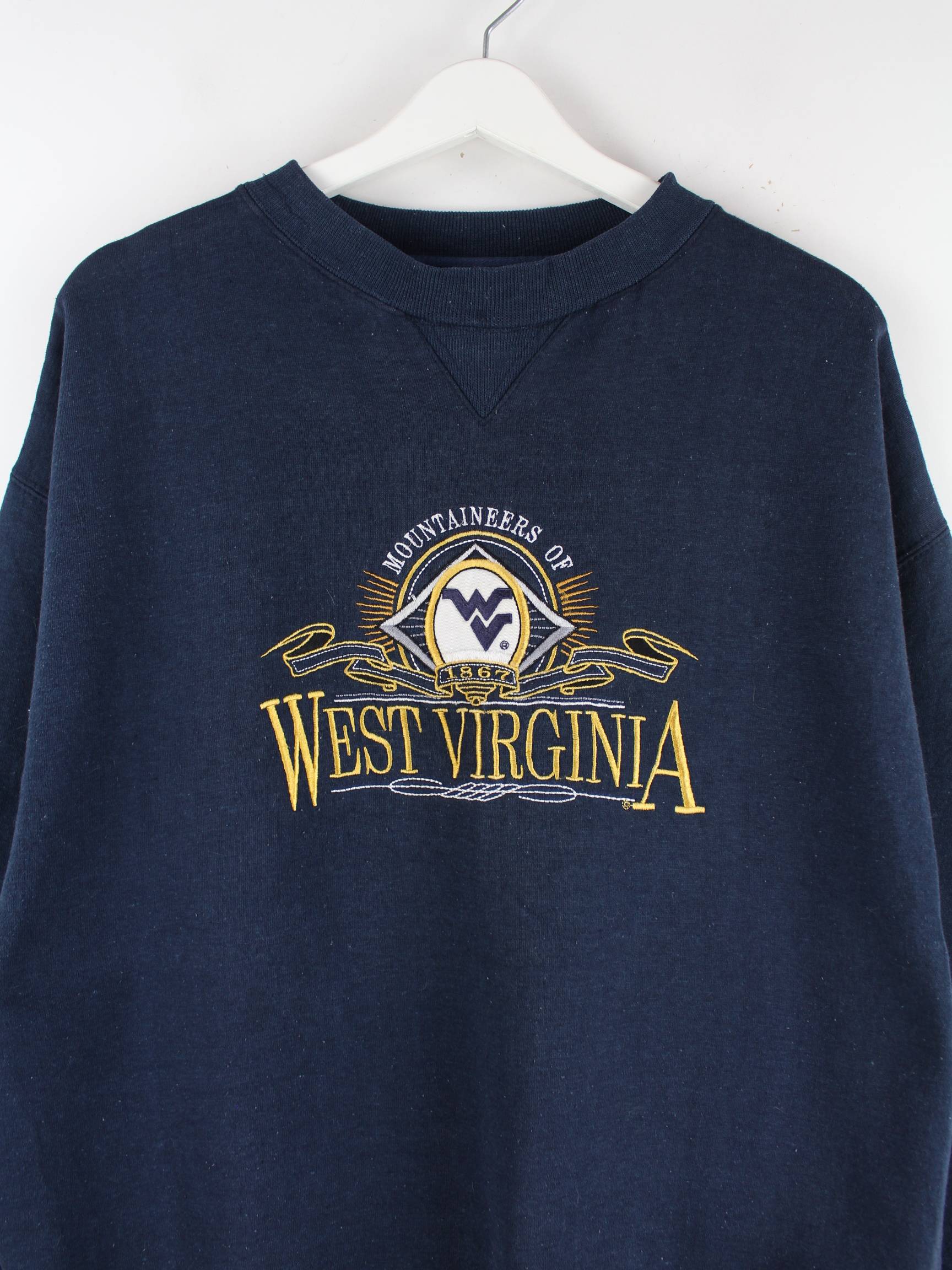 Vintage 90s West Virginia Embroidered Sweater Blau XL