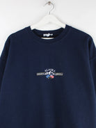 Blauer Vintage Sweater in Größe L. Er ist aus einer Baumwollmischung produziert und in sehr gutem Zustand zu haben.