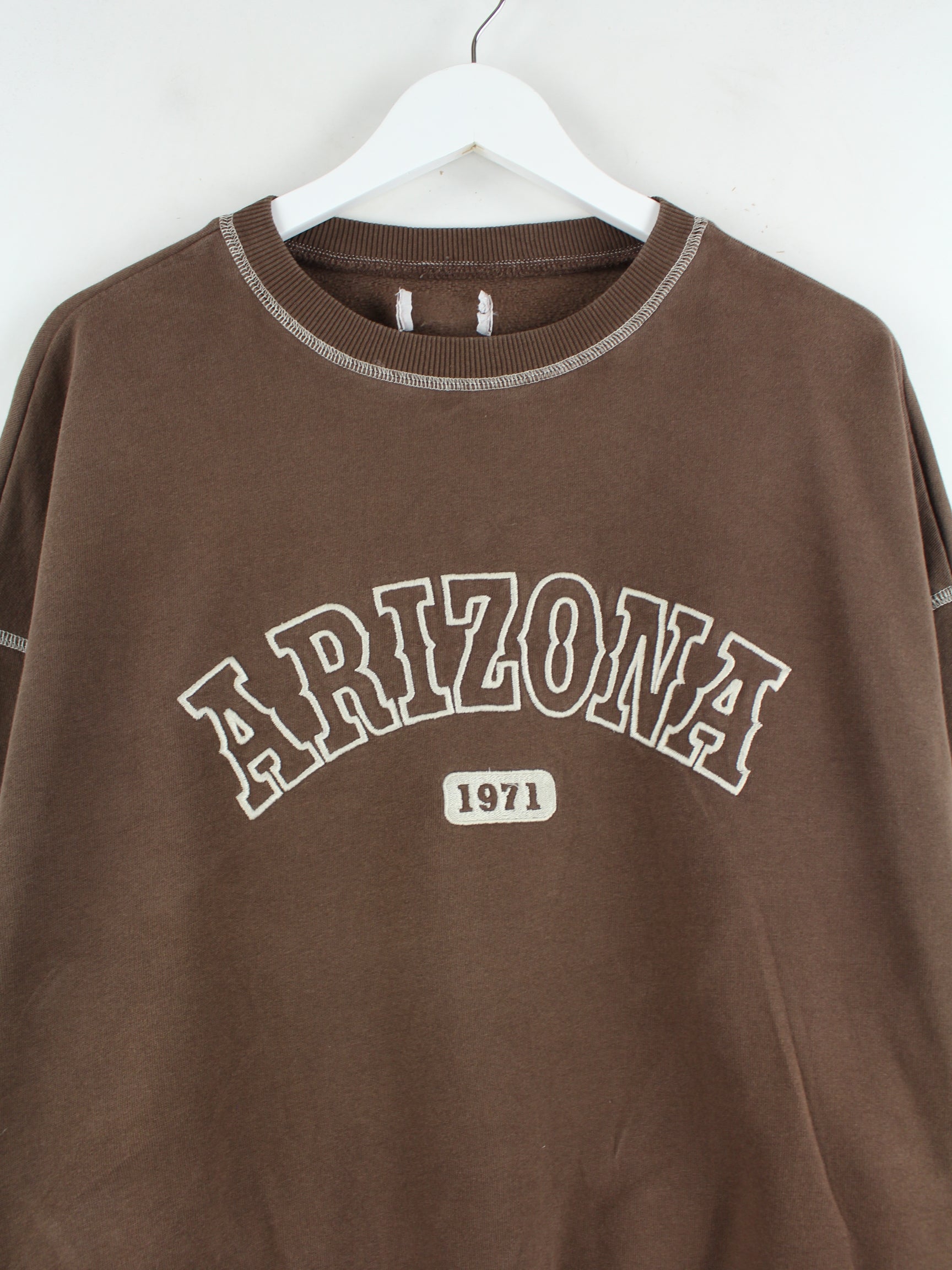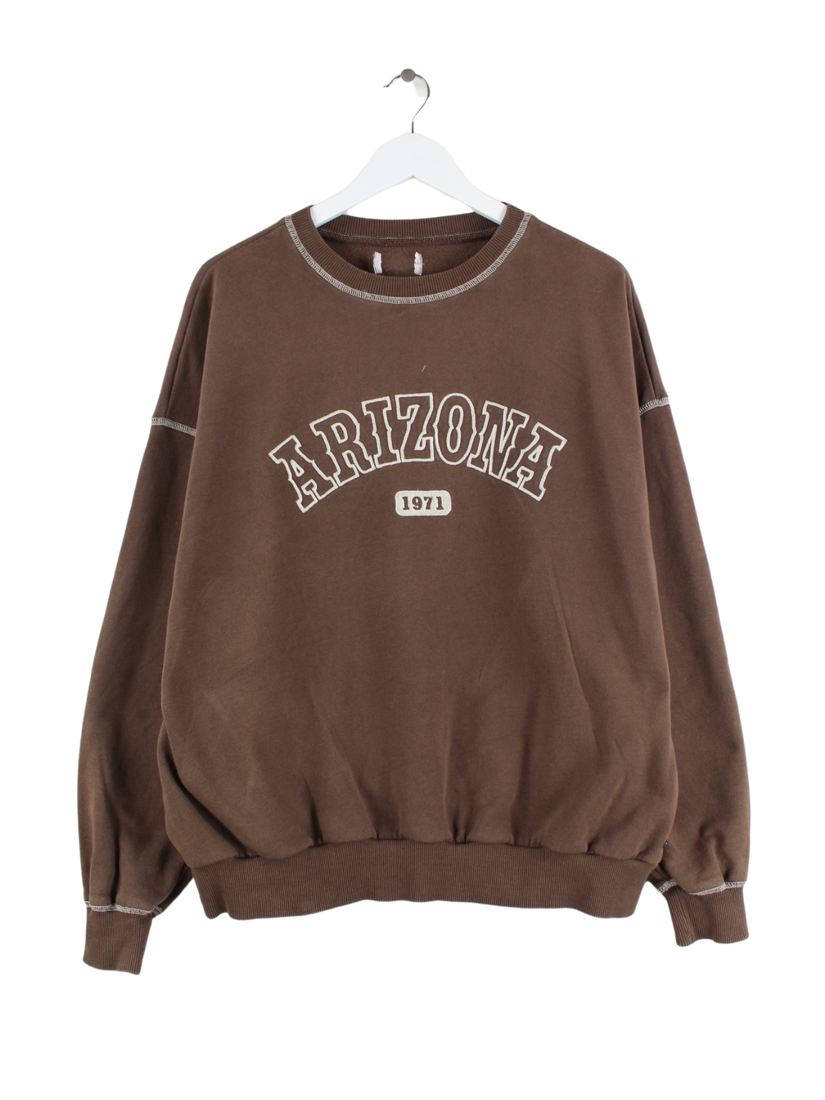 Brauner Vintage Sweater mit gesticktem Logo in Größe M. Er ist aus Baumwolle gefertigt und in sehr gutem Zustand im Bestand.