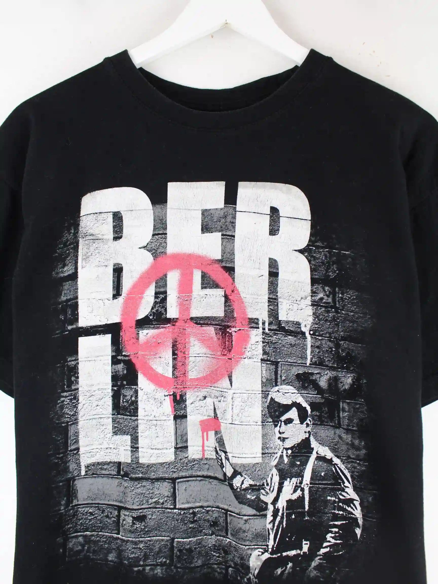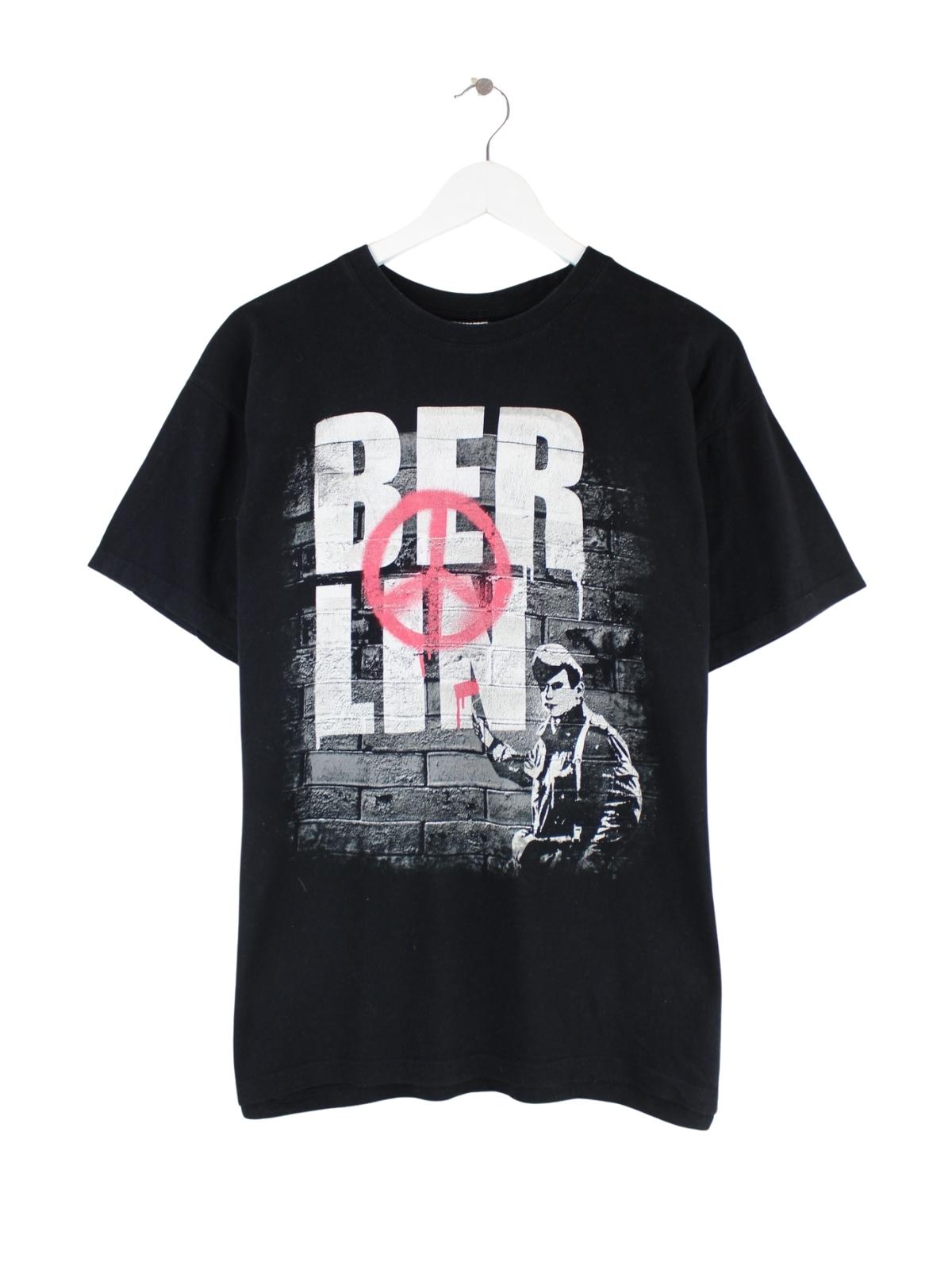 Vintage T-Shirt in Größe L. Es ist aus Baumwolle gemacht und in Schwarz zu bekommen. Mit seltenem Berlin Print.