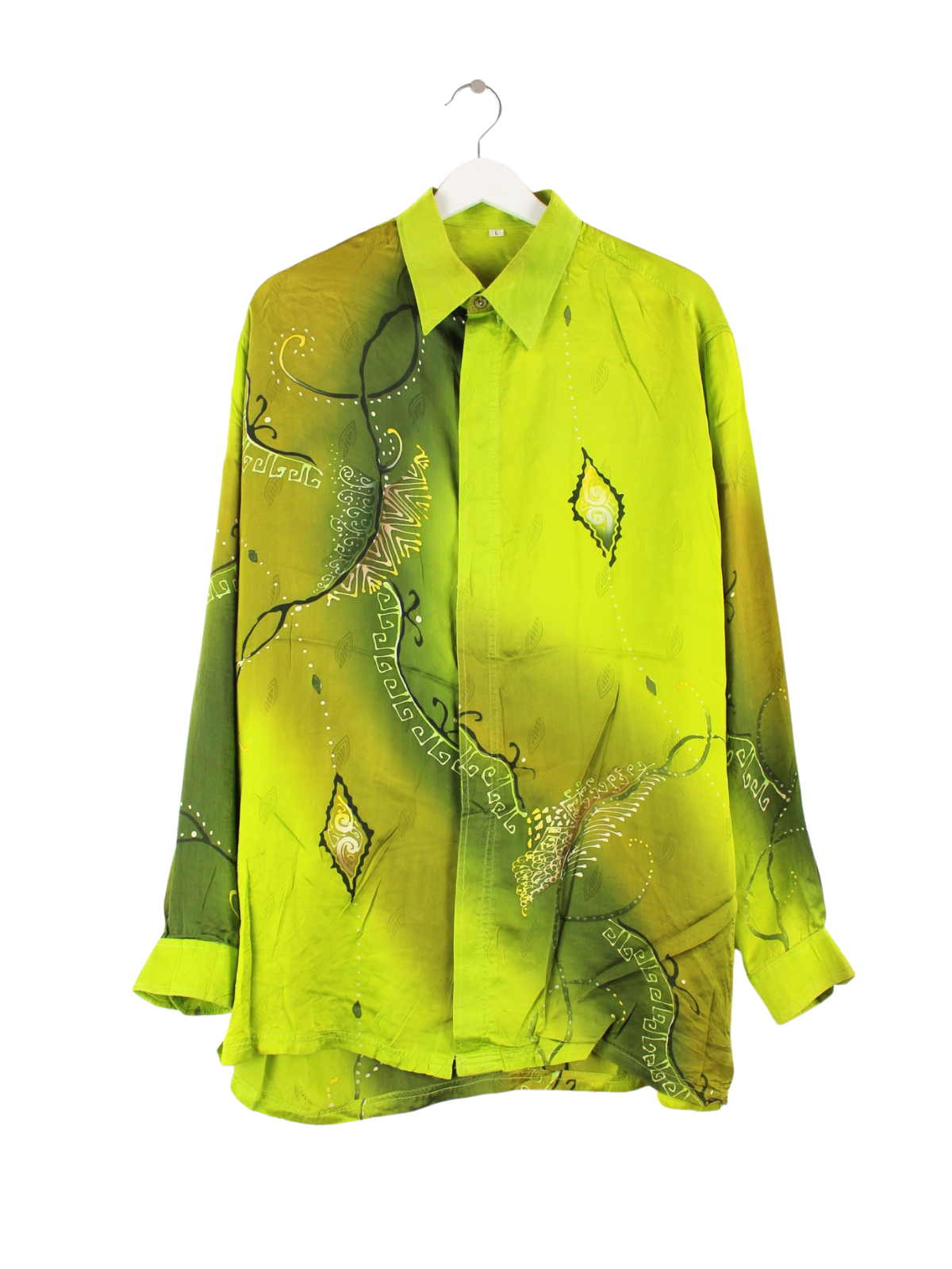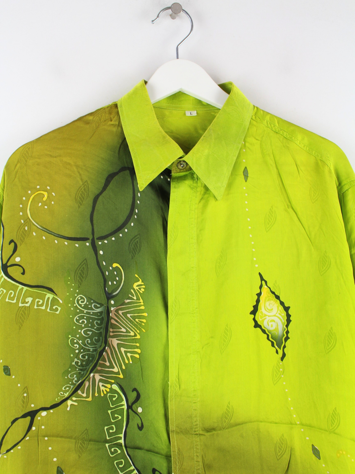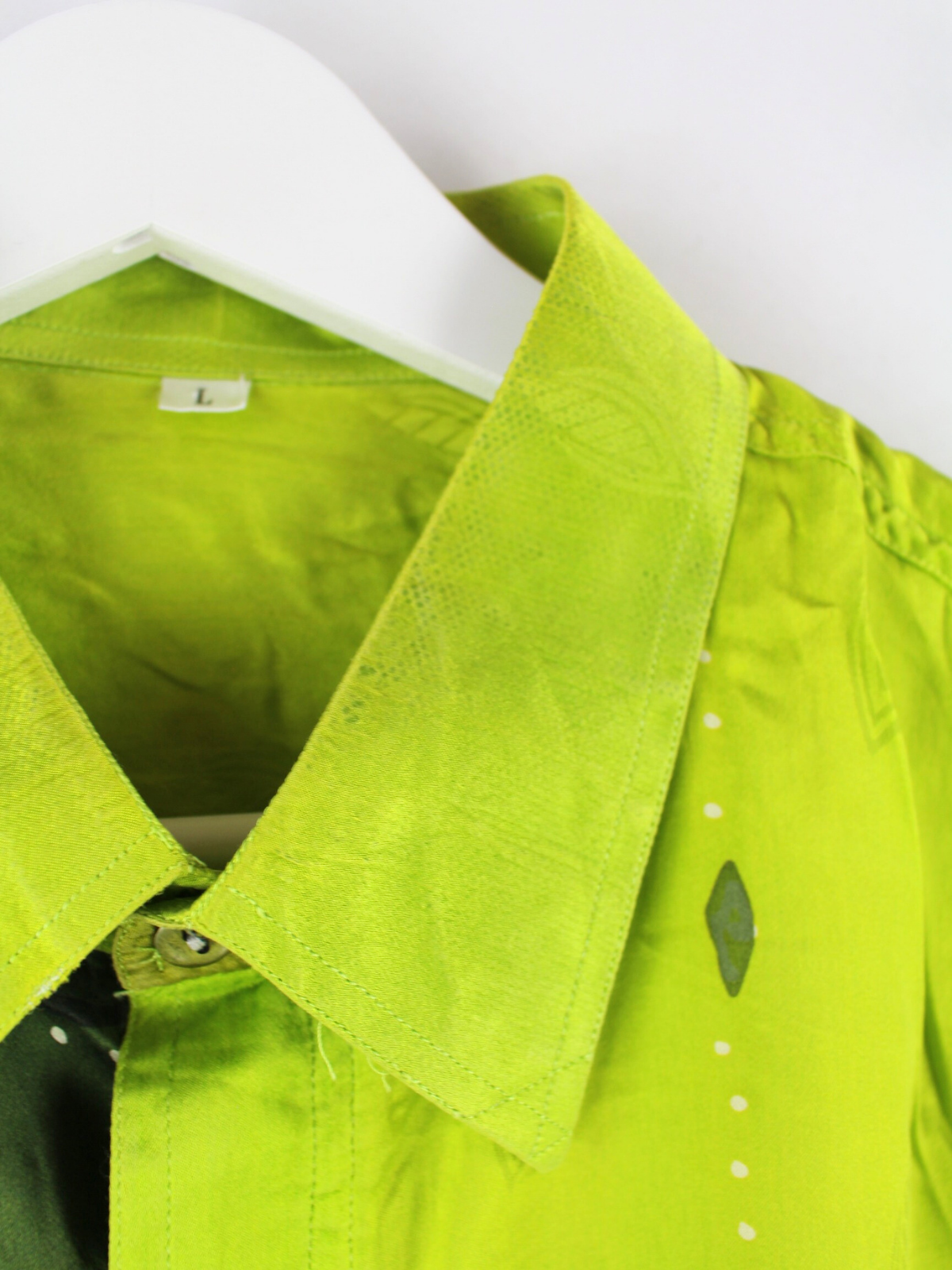 Grünes Vintage Freizeit Hemd in Größe L. Es ist aus Synthetik gemacht und in gutem Zustand im Angebot.