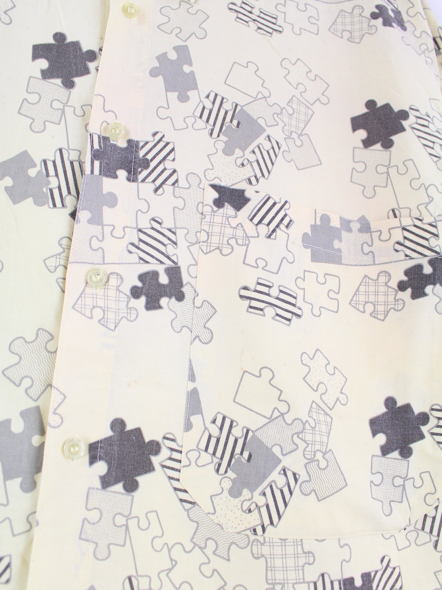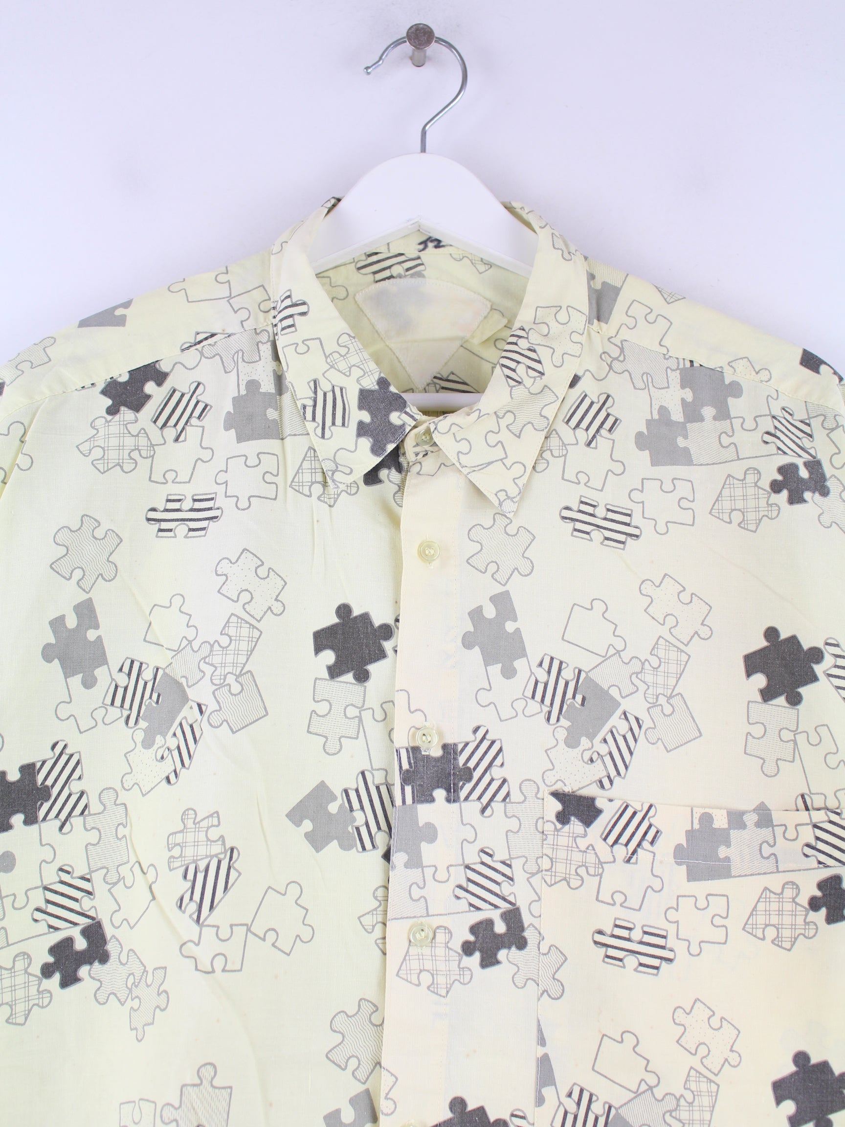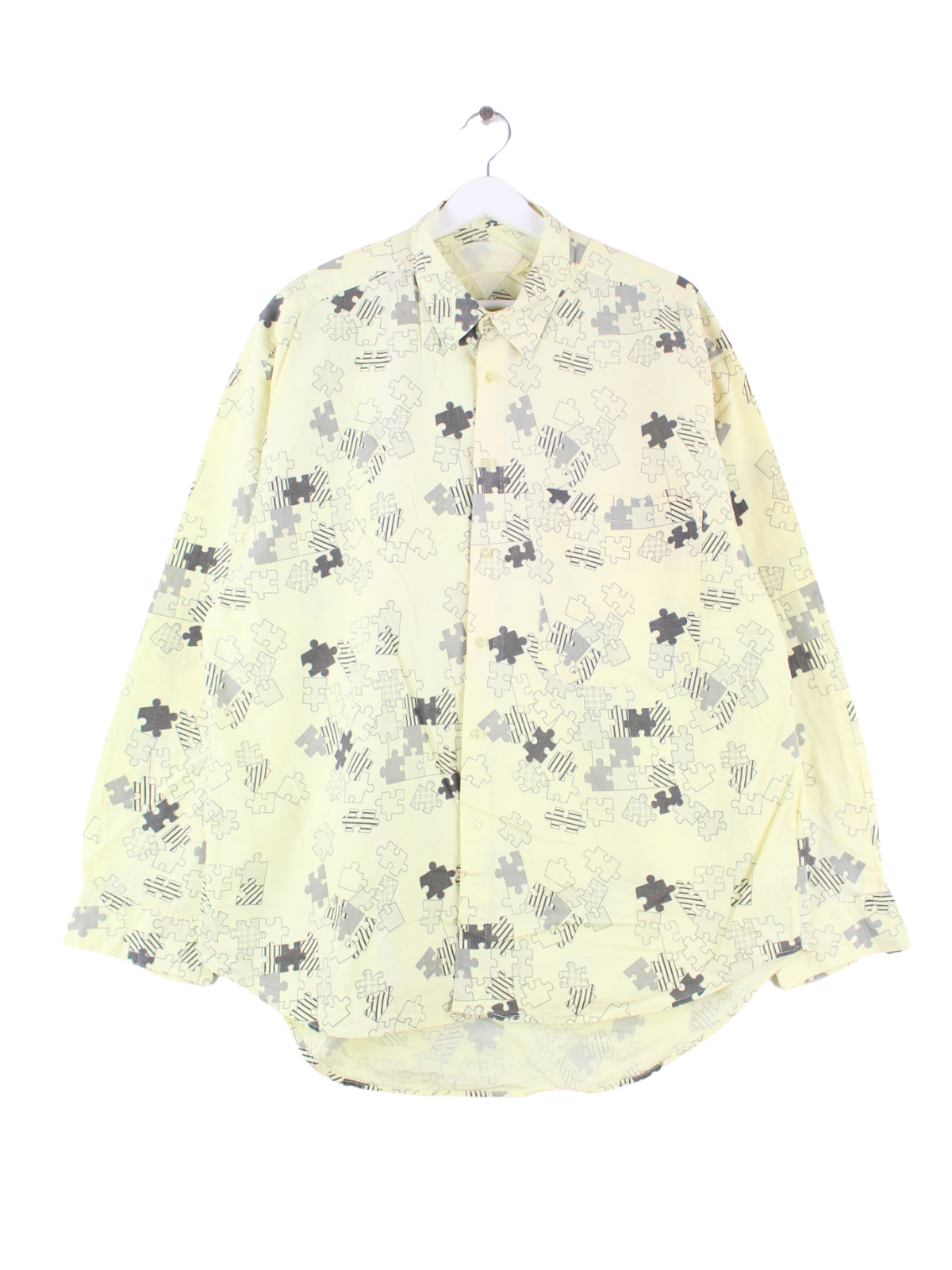 Vintage Crazy Puzzle Pattern Hemd Gelb XXL
