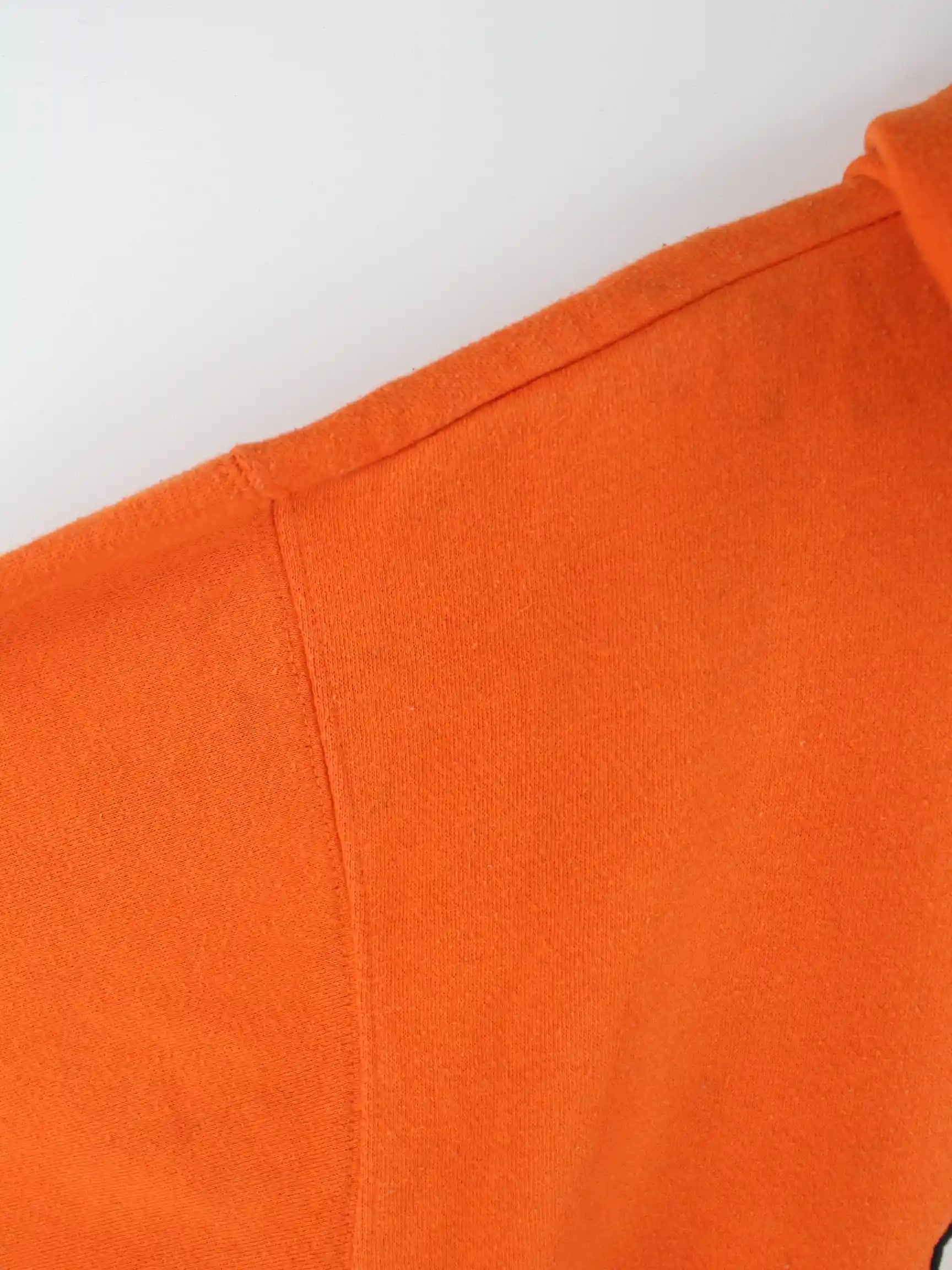 Vintage Hoodie in Größe XL. Er ist aus einer Baumwollmischung und in Orange bei uns vorrätig.