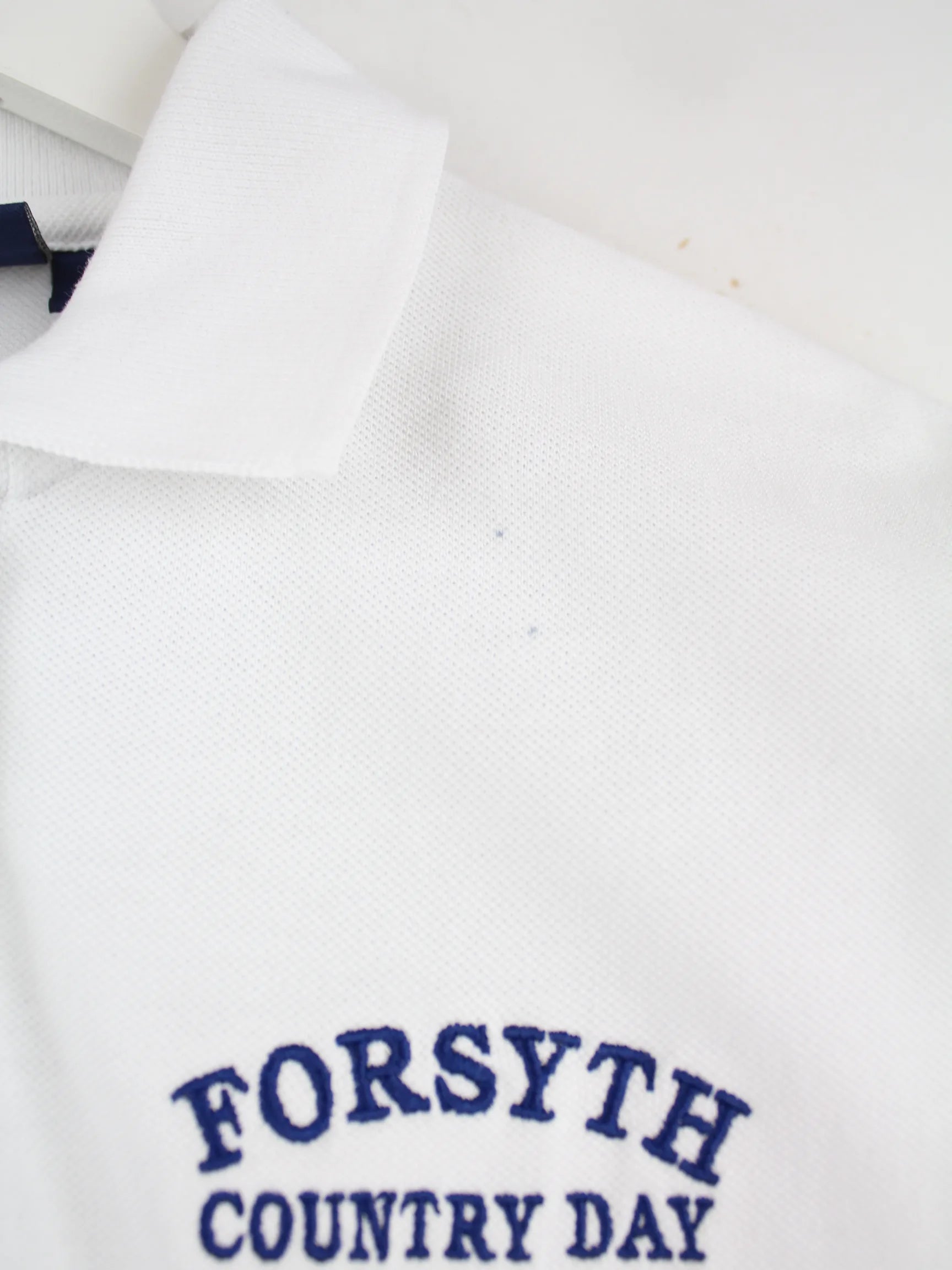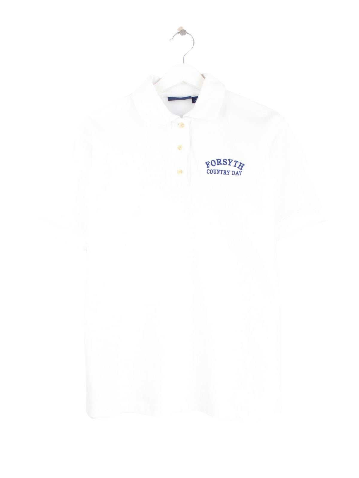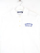 Weißes Vintage Poloshirt in Größe M. Es ist aus Baumwolle produziert und in gutem Zustand bei uns zu bekommen.