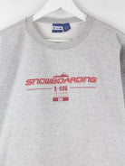 Vintage Sweater in Größe L aus den 90'ern. Er ist aus einer Baumwollmischung gefertigt und in Grau zu haben. Mit chiquem Snowboarding Print.
