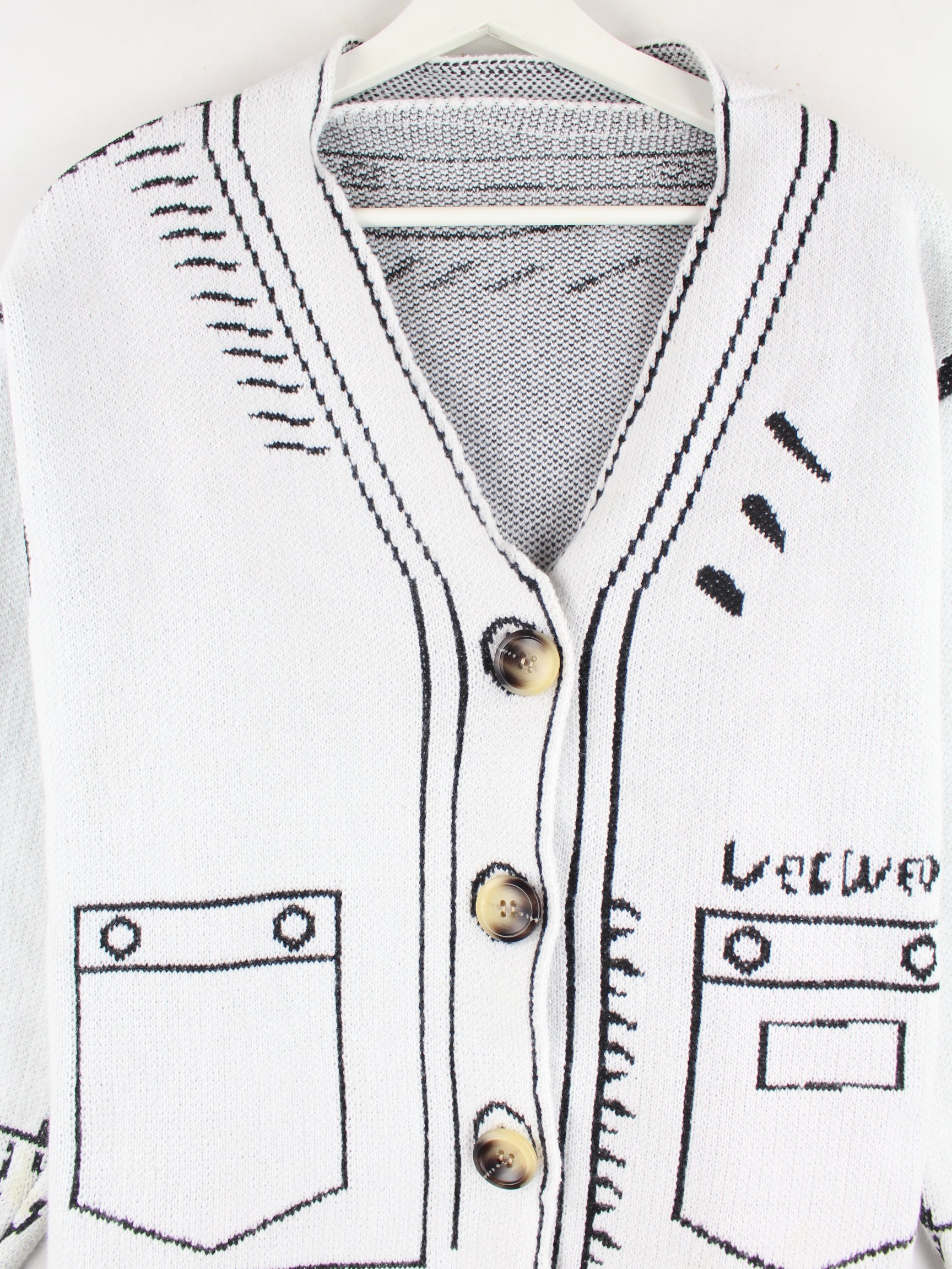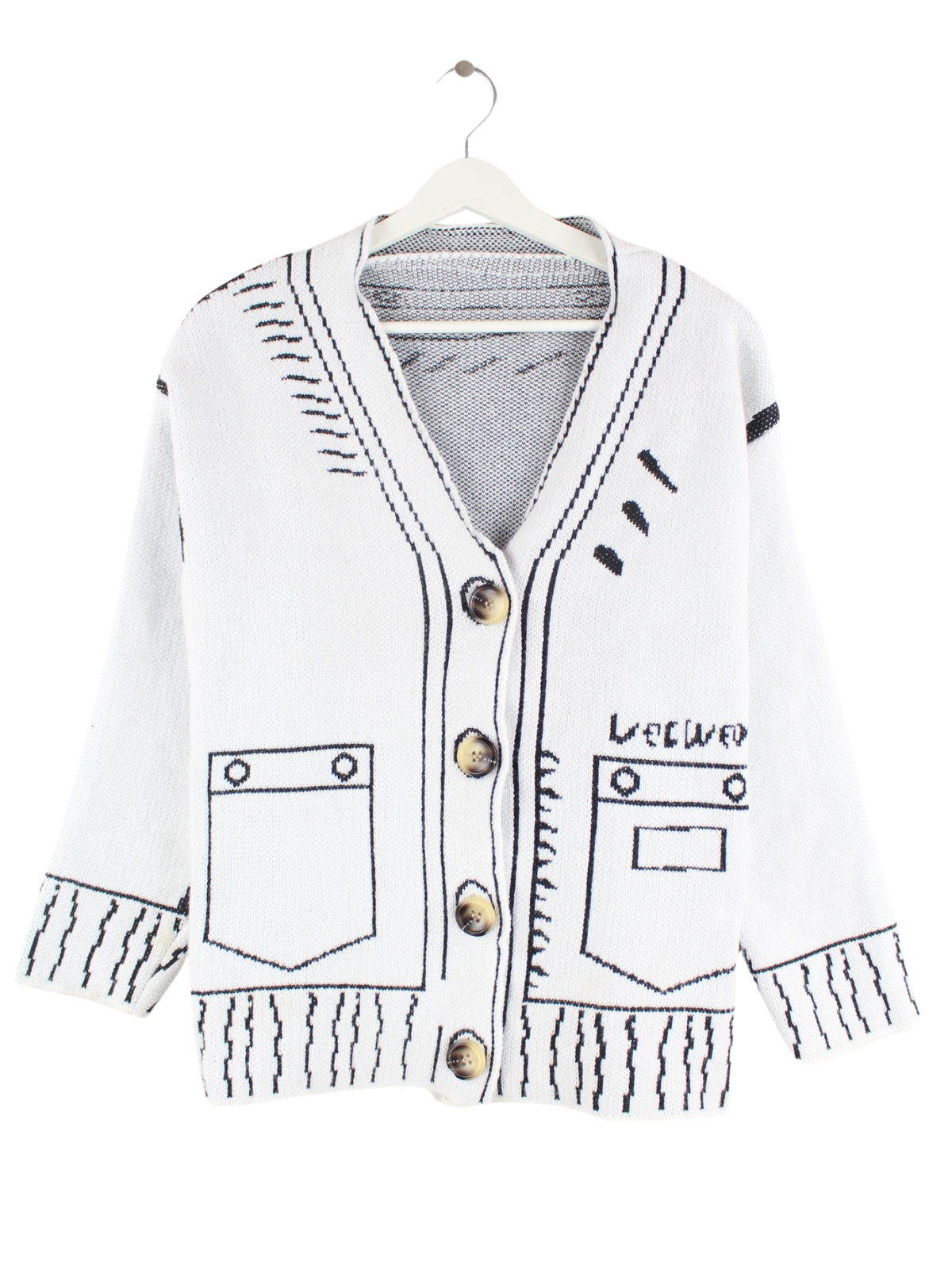 Weiße Vintage Strickjacke aus den 90'ern in Größe L. Sie ist aus Wolle gefertigt und in gutem Zustand in Stock.
