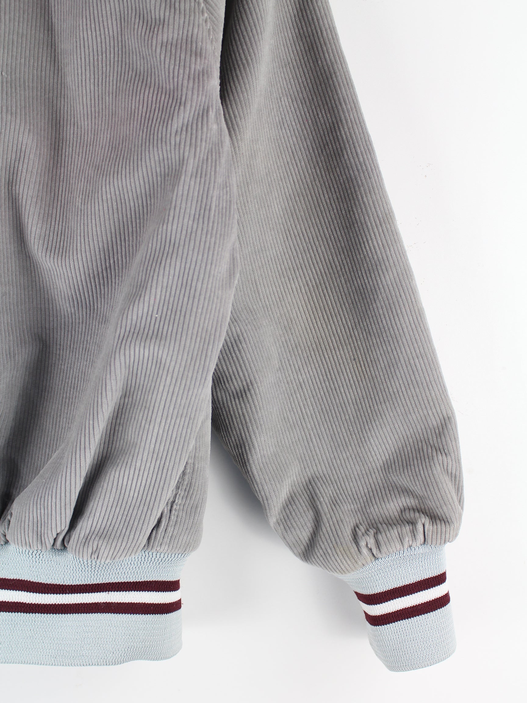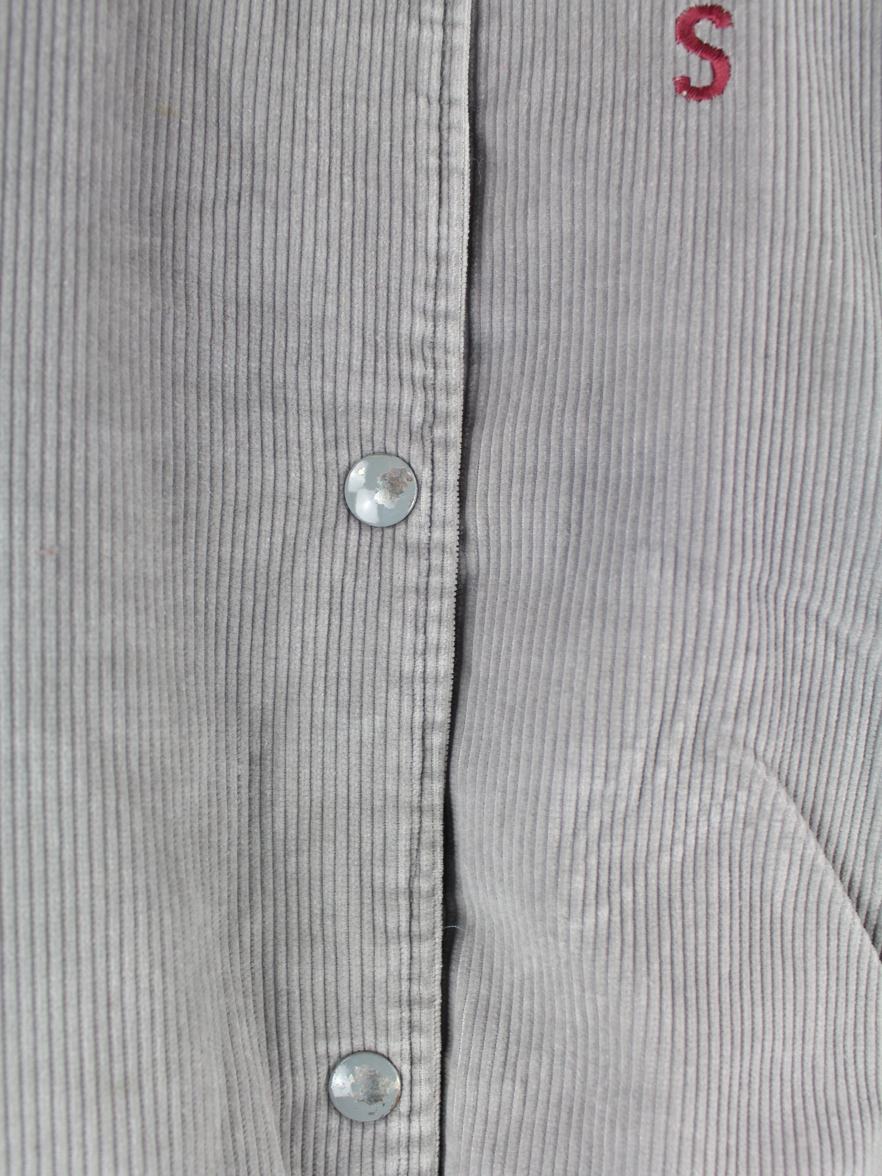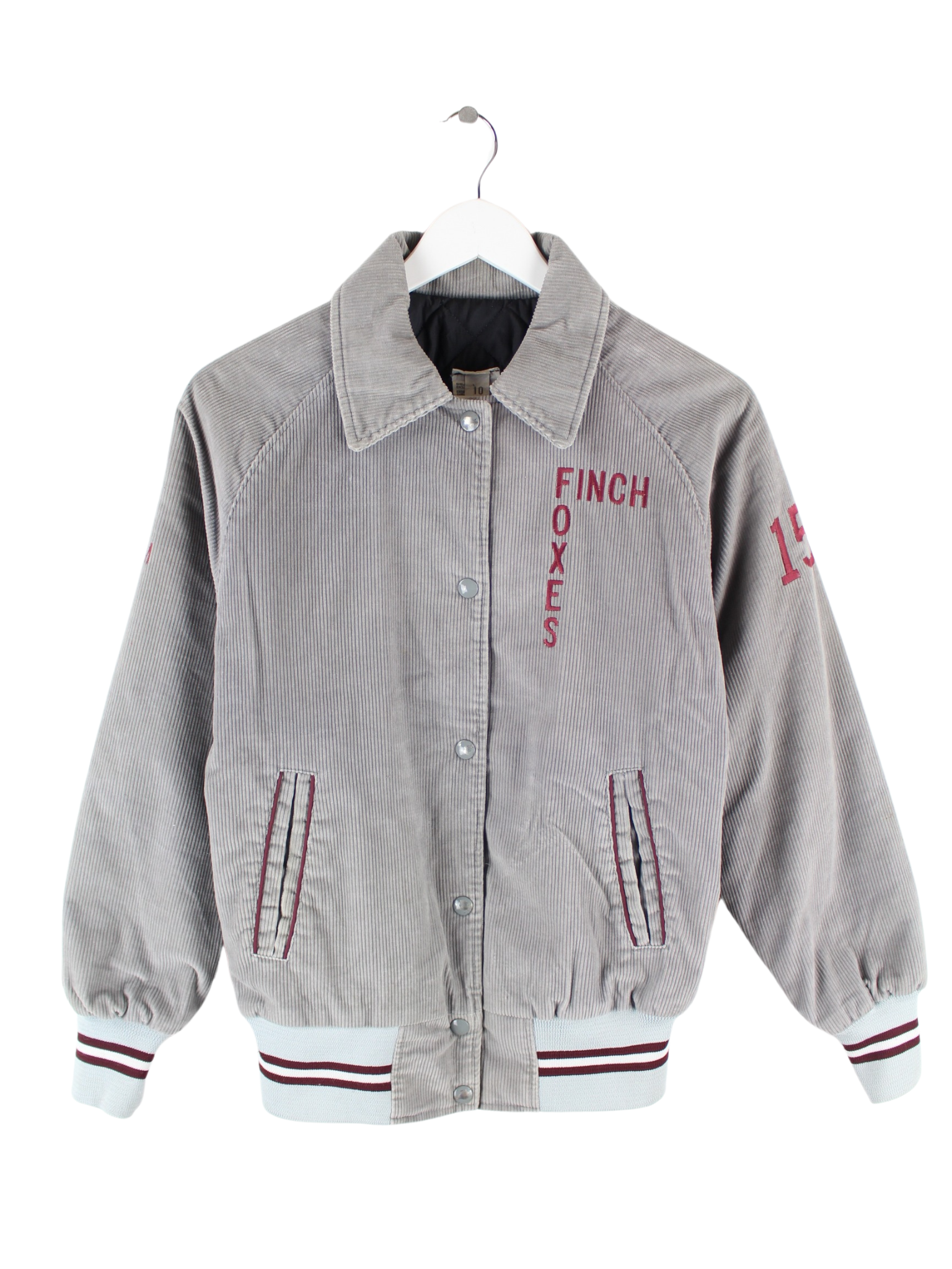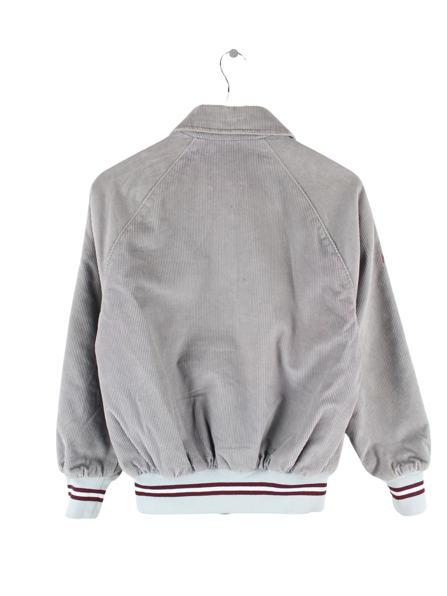 Vintage Jacke in Größe S aus den 90'ern. Sie ist aus einer Baumwollmischung produziert und in Grau lieferbar.