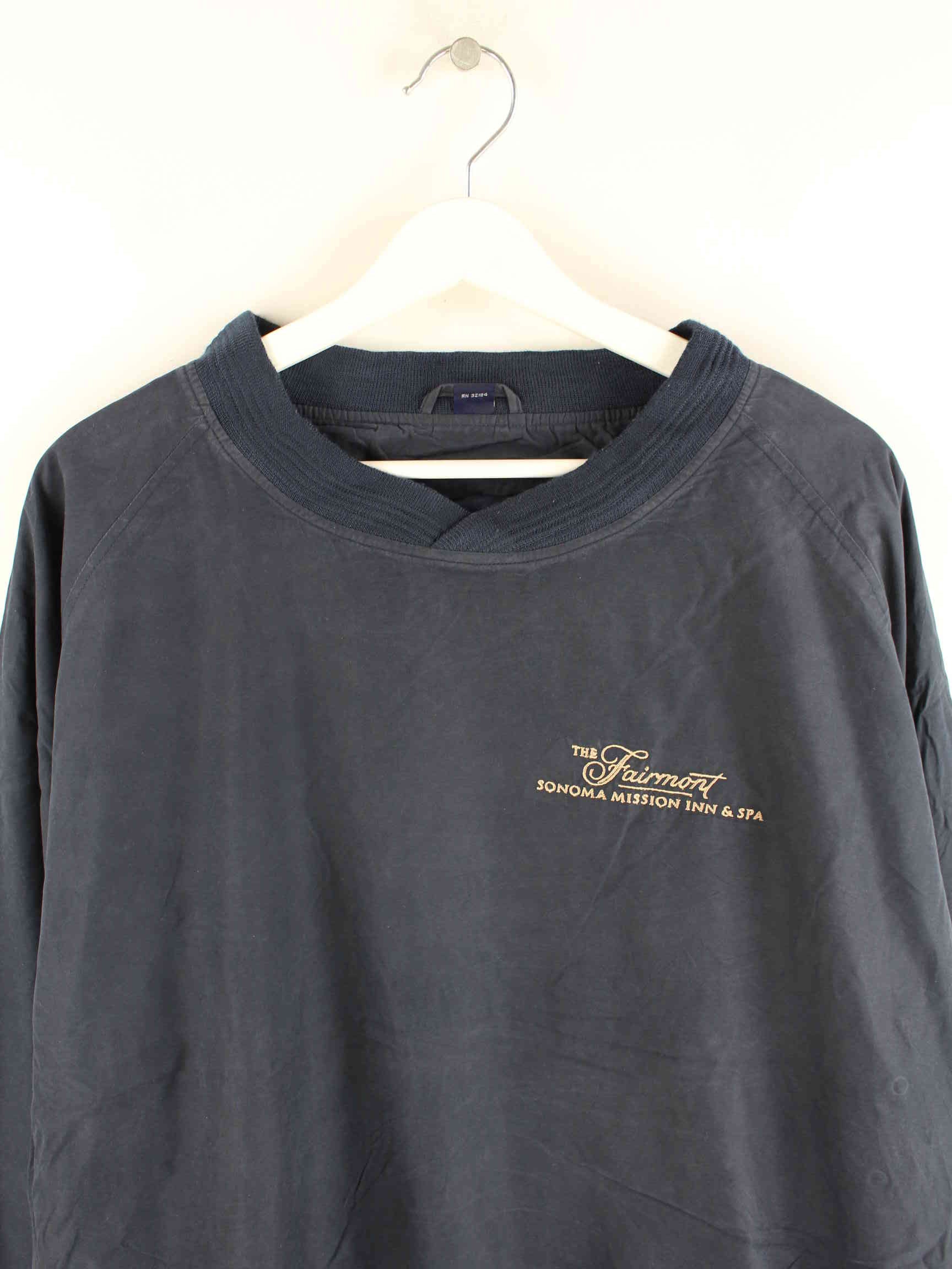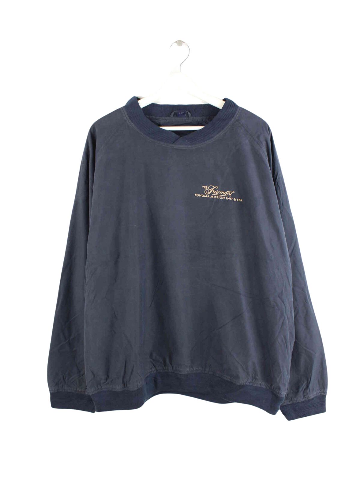Vintage Sweater mit gestickten Motiven in Größe XL. Er ist aus Synthetik gemacht und in Blau zu bekommen.