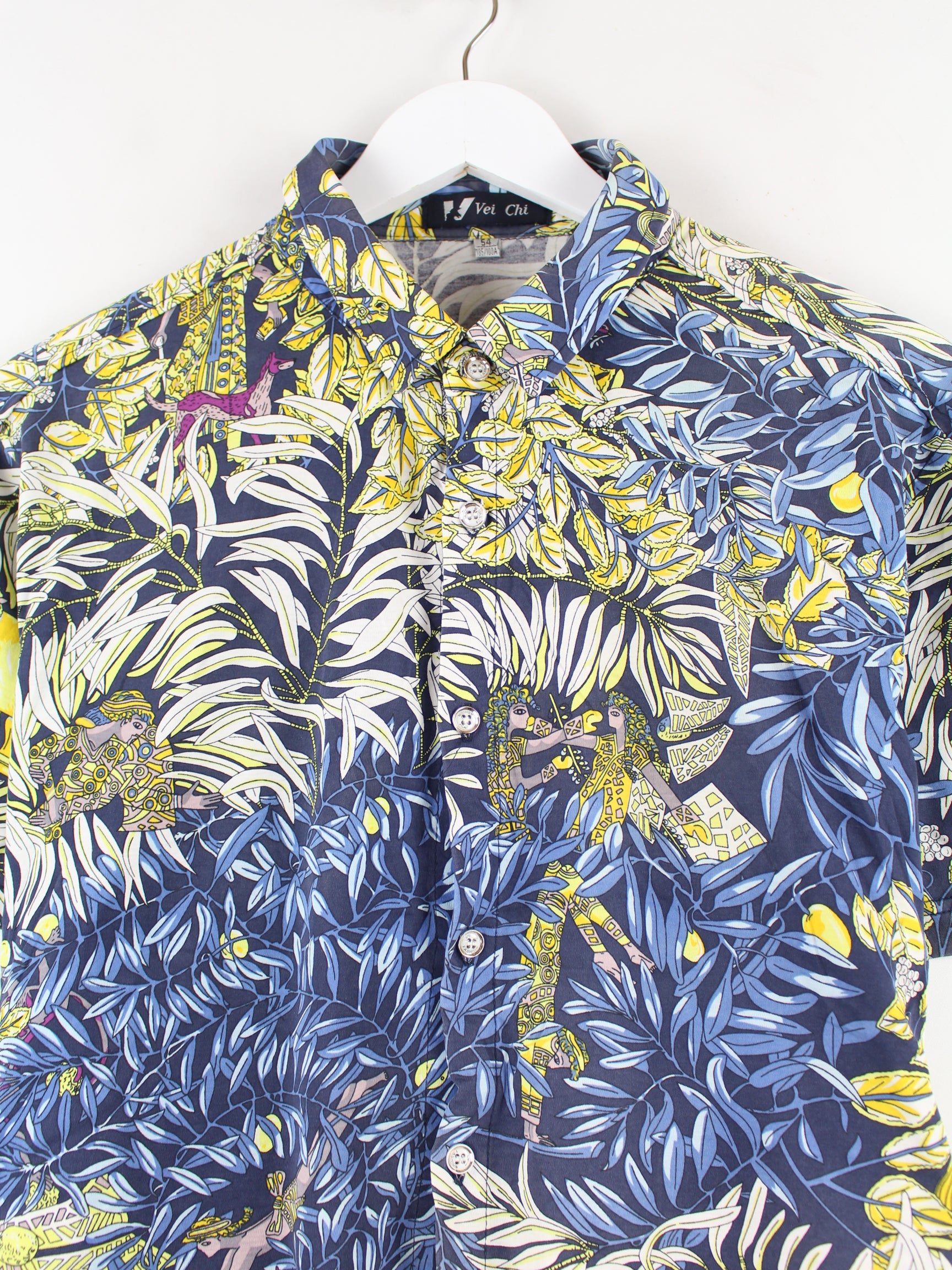 Vintage Freizeit Hemd in Größe M. Es ist aus Baumwolle gemacht und in bunten Farben bei uns vorrätig.