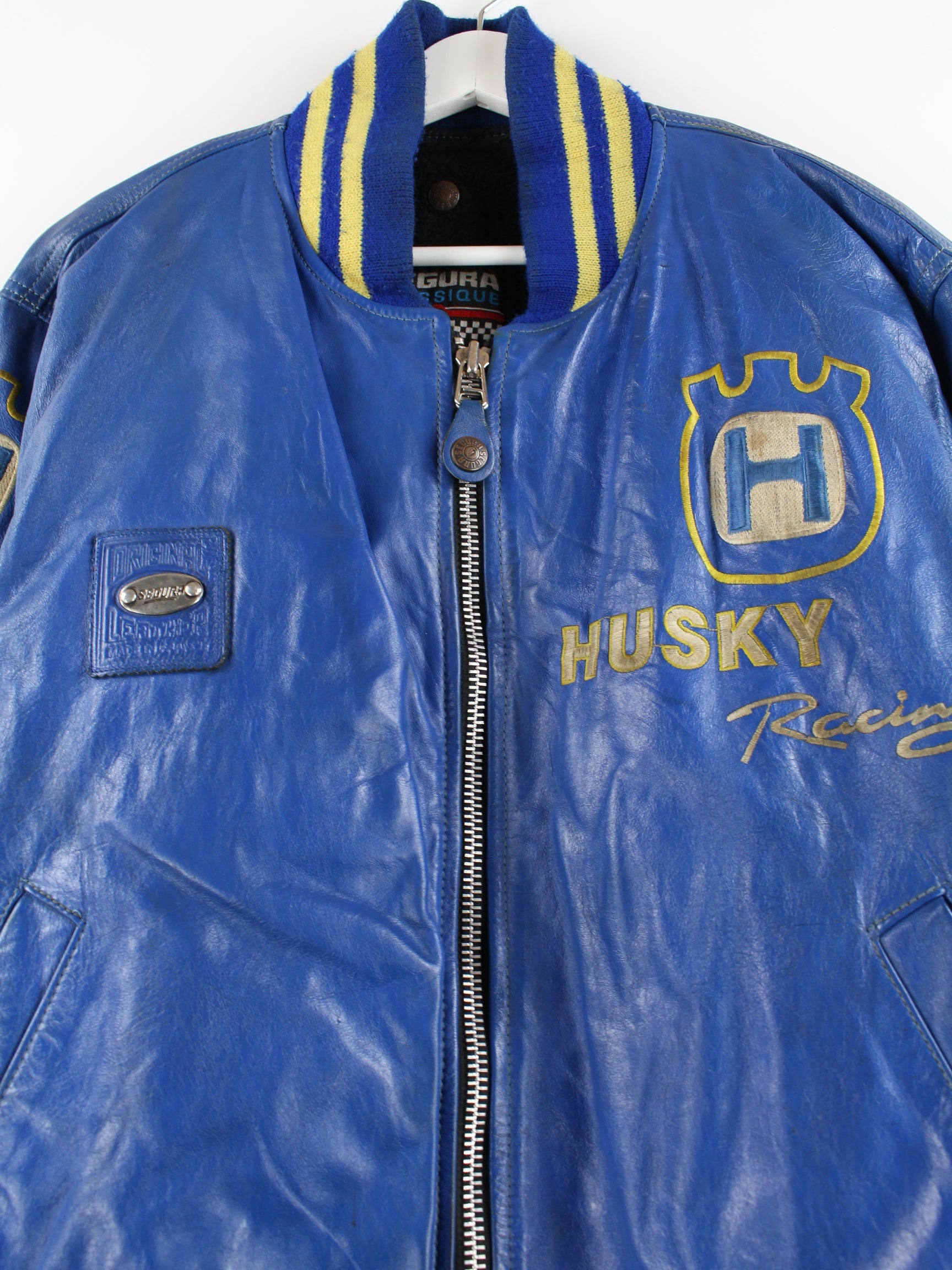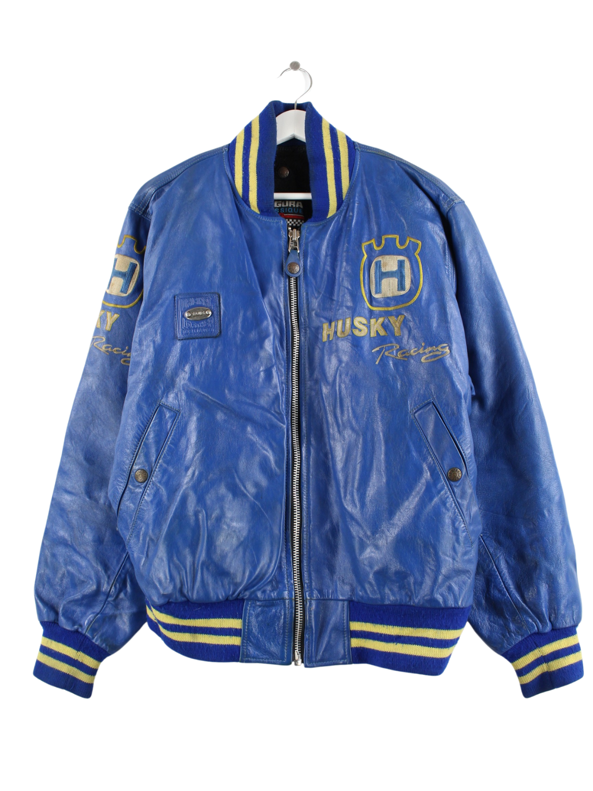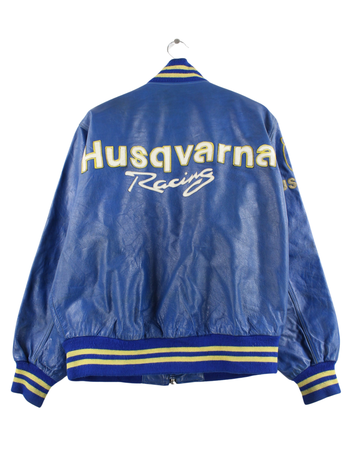 Vintage Husqvarna Racing Leder Jacke Blau M