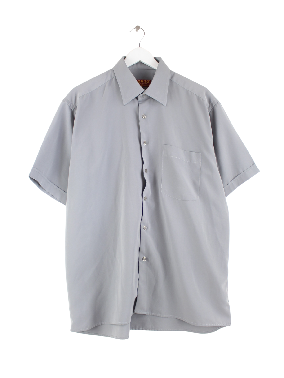 Vintage Freizeit Hemd in Größe L. Es ist aus Baumwolle angefertigt und in Grau im Bestand.