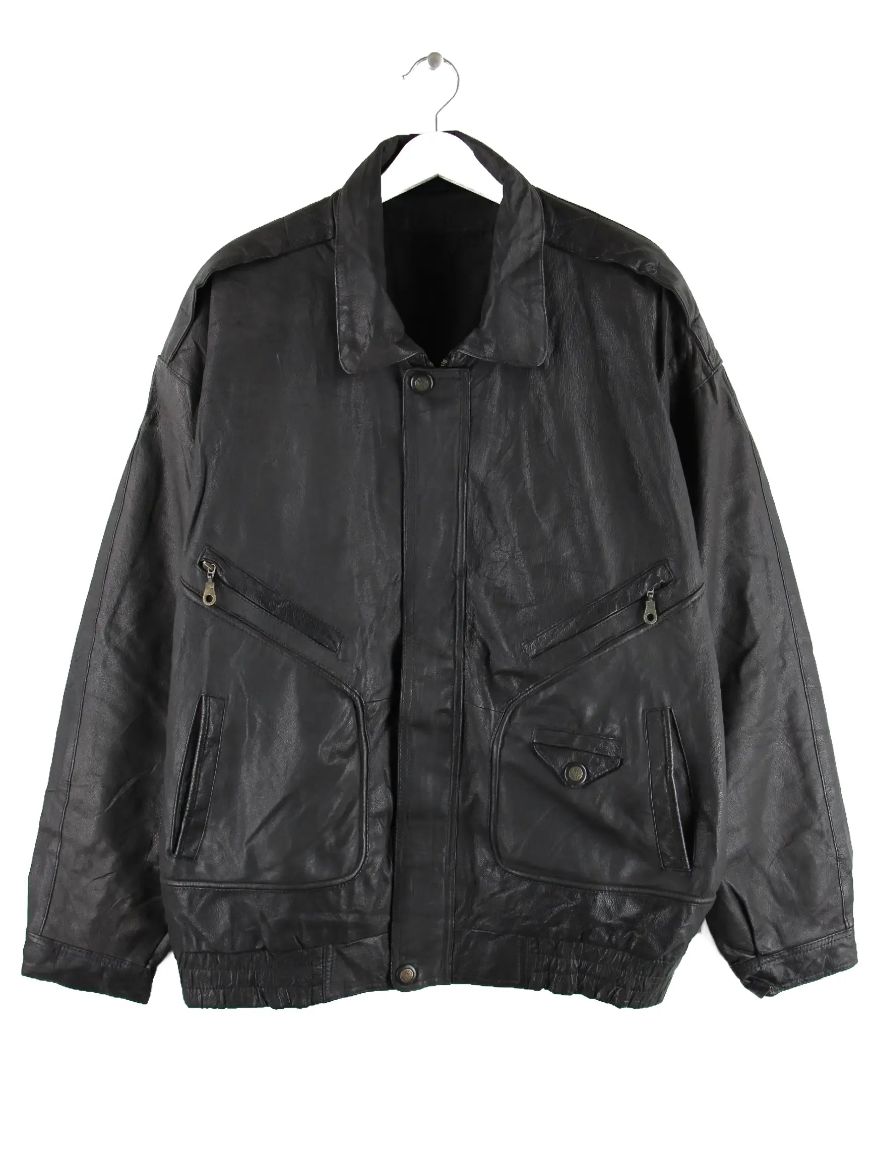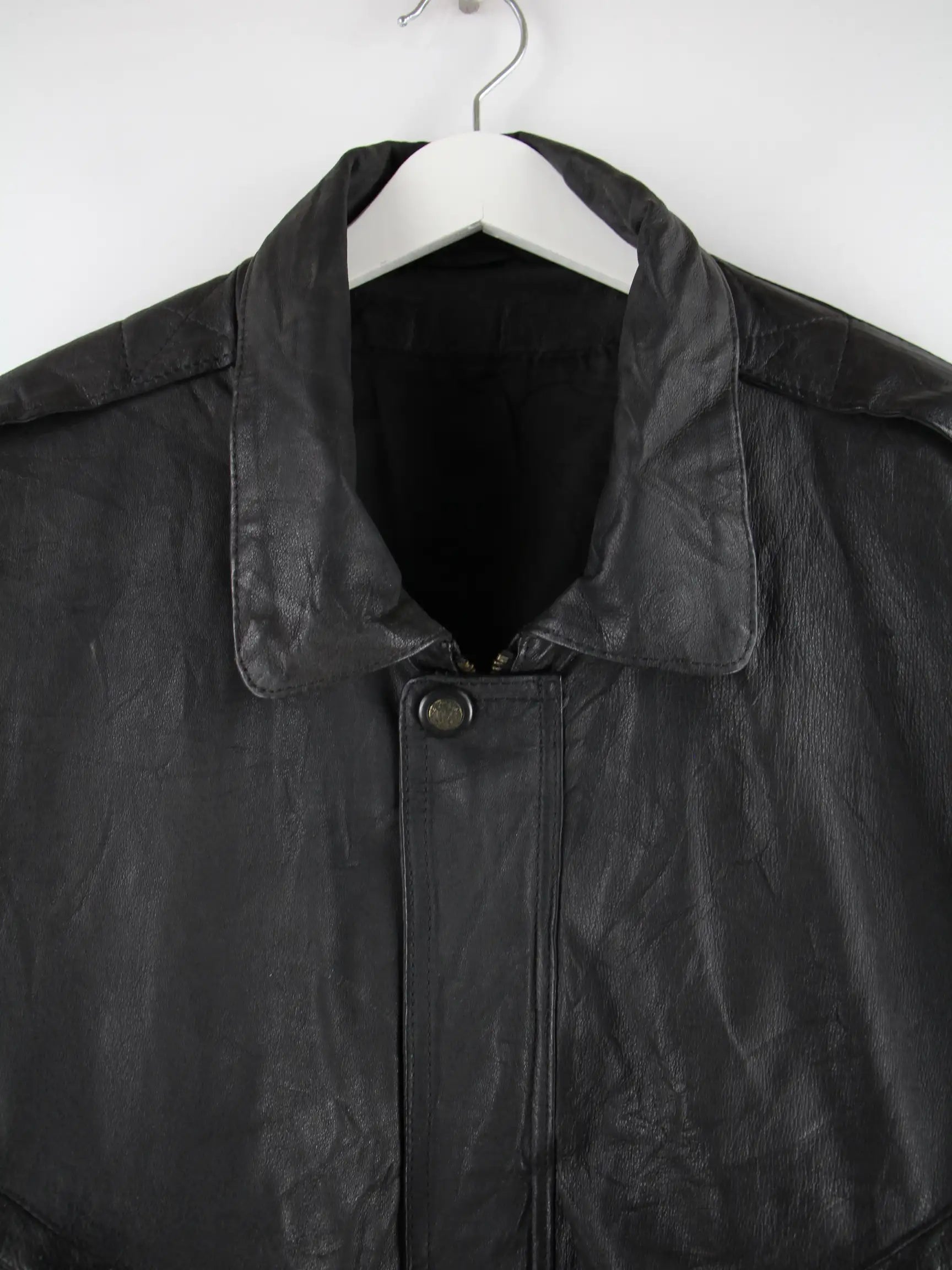 Vintage Jacke in Größe XXL. Sie ist aus Leder und in Schwarz in Stock.