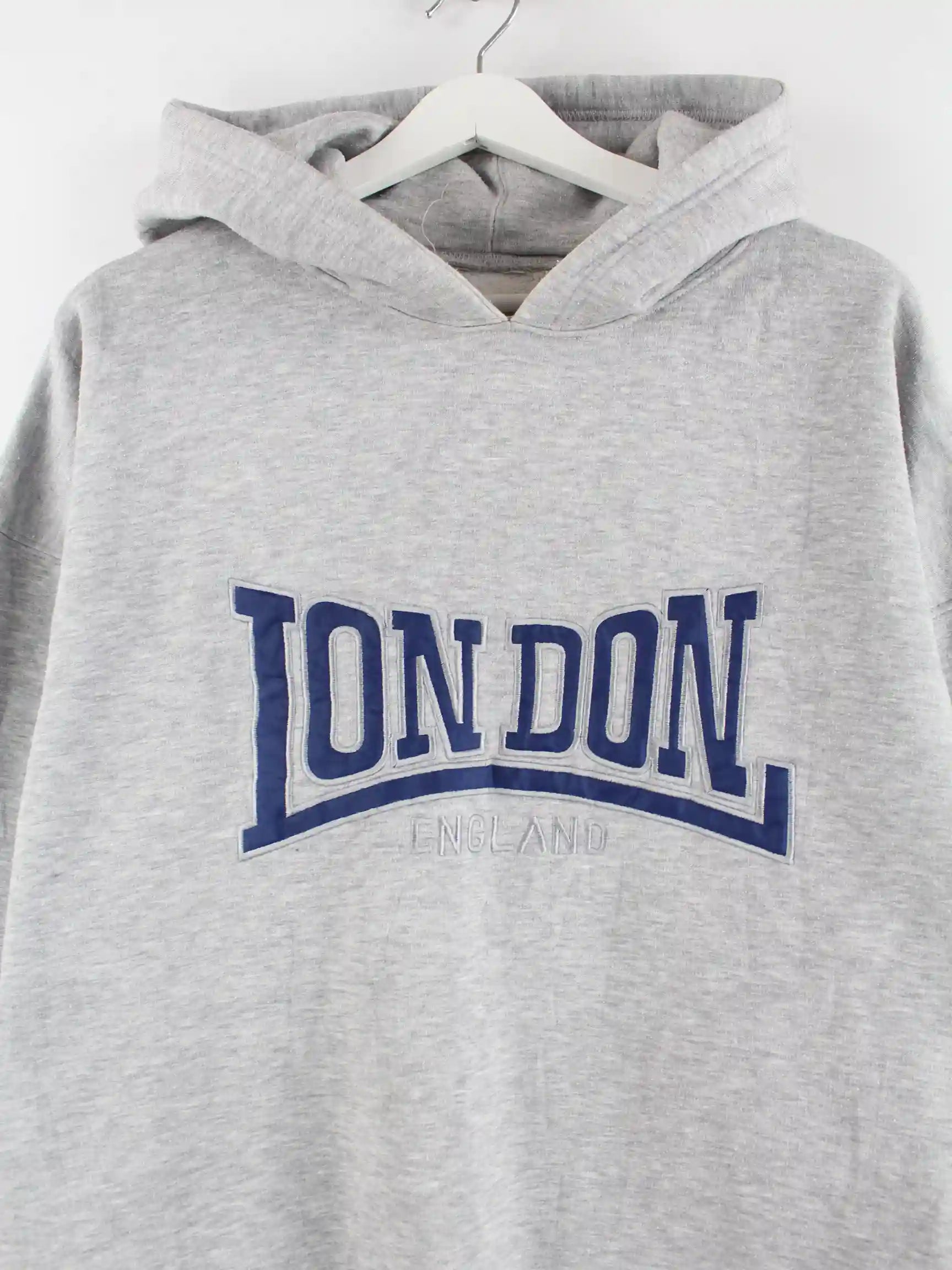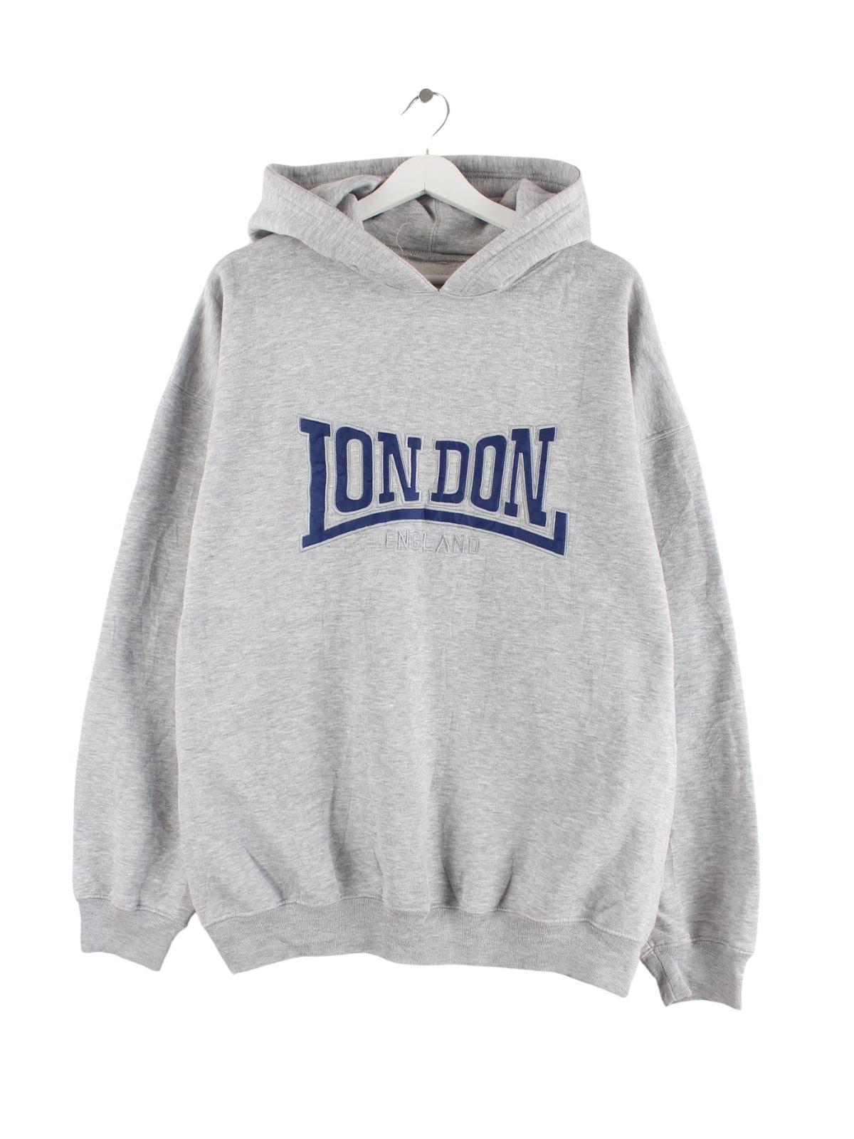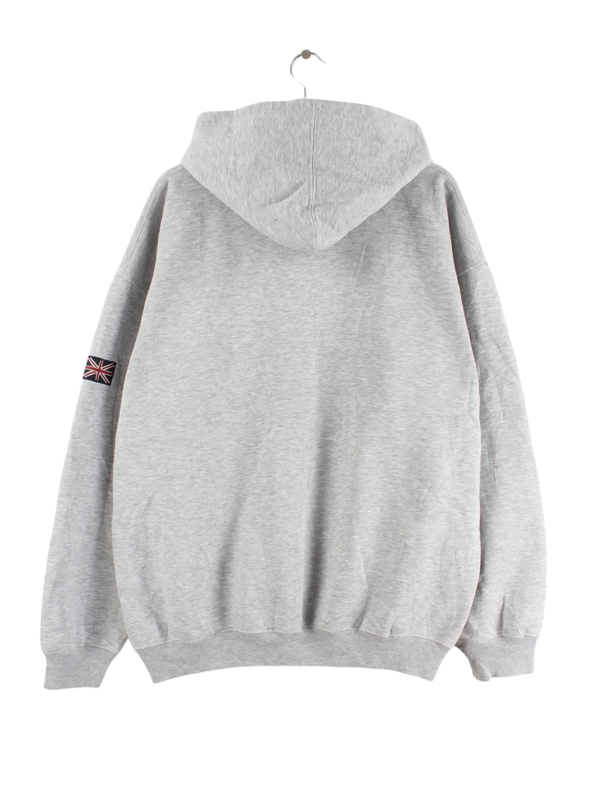 Grauer Vintage Hoodie mit gestickten Motiven in Größe XXL. Er ist aus einer Baumwollmischung gemacht und in sehr gutem Zustand in Stock.