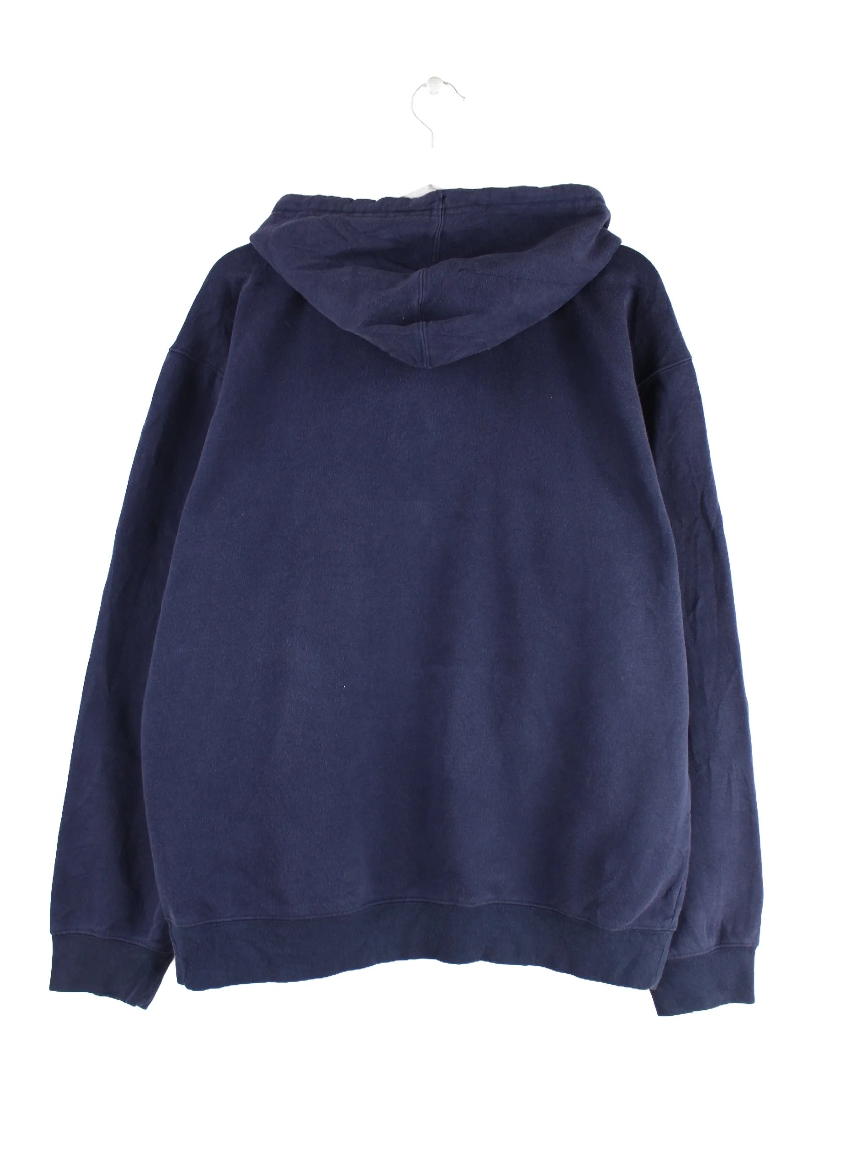 Vintage Hoodie in Größe L. Er ist aus einer Baumwollmischung produziert und in Blau in Stock.