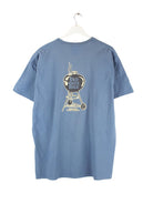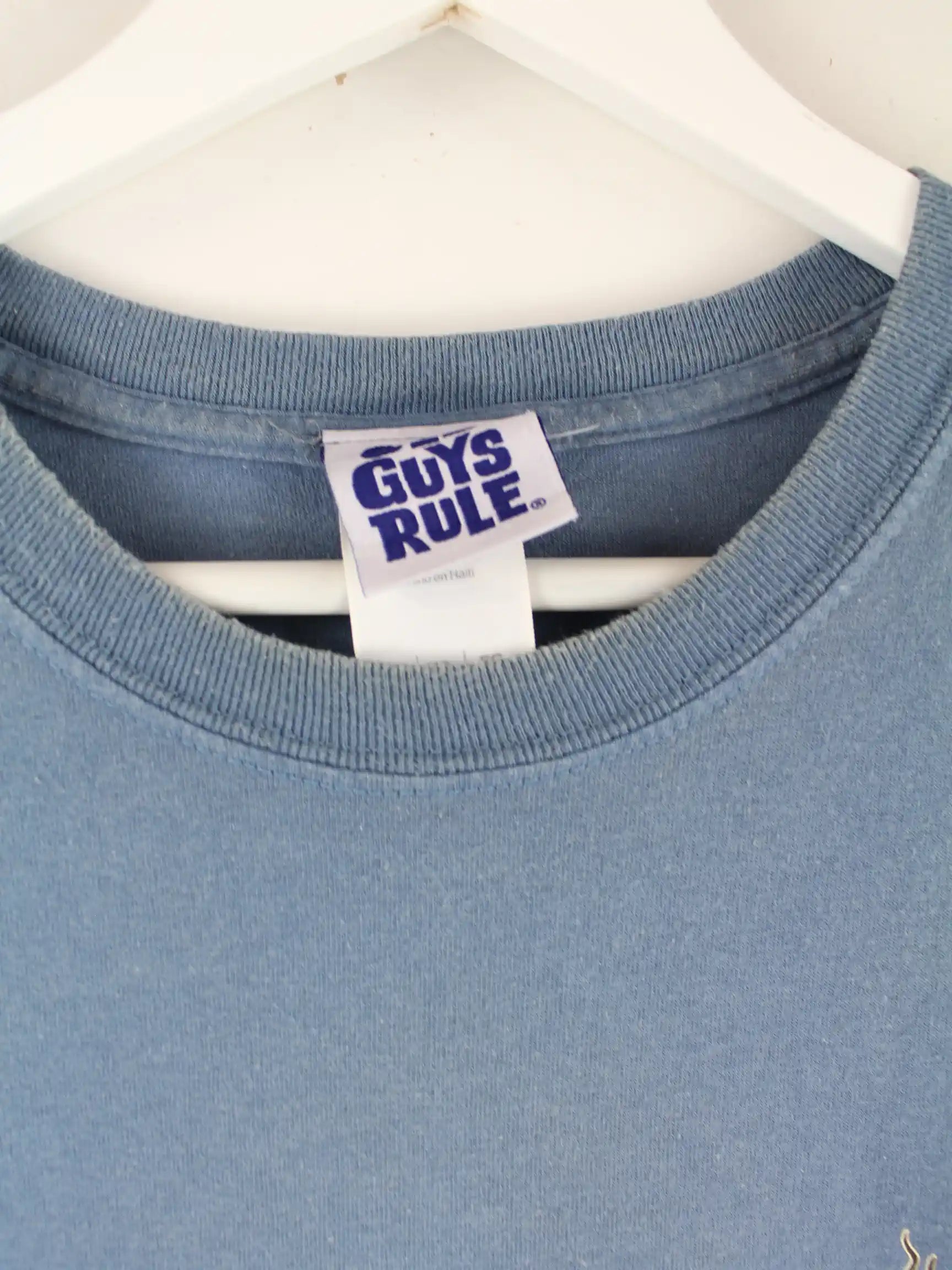 Blaues Vintage T-Shirt in Größe XL. Es ist aus Baumwolle produziert und in gutem Zustand bei uns vorrätig. Mit chiquem Rule Print.