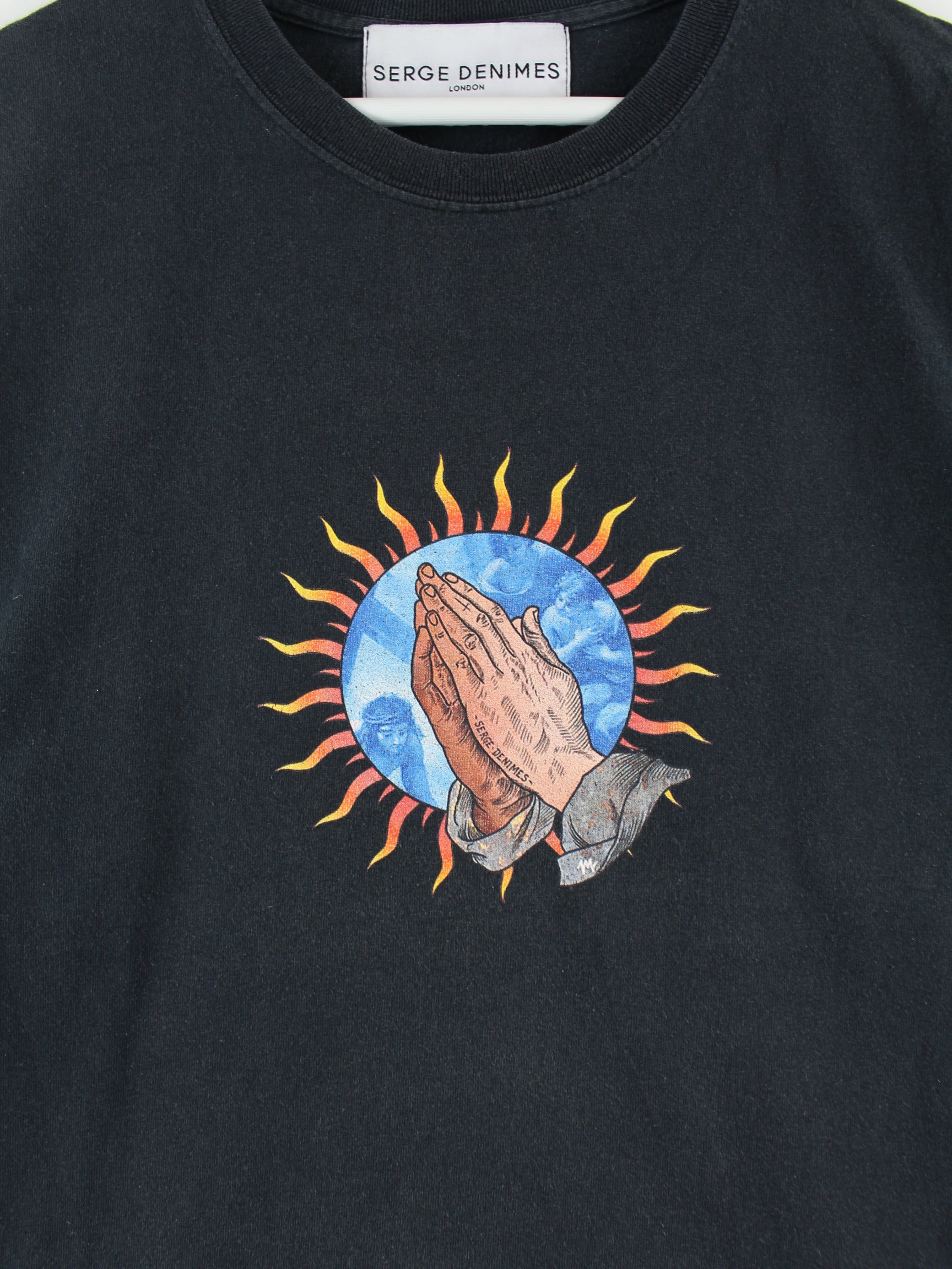 Vintage Prayer Print T-Shirt Schwarz L