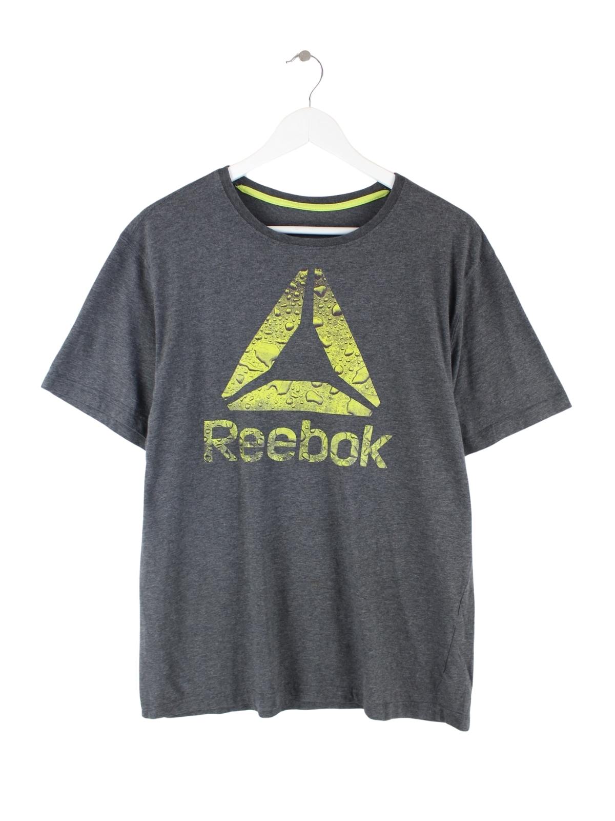 Reebok T-Shirt in Größe L. Es ist aus Baumwolle produziert und in Grau im Bestand. Mit chiquem Print.