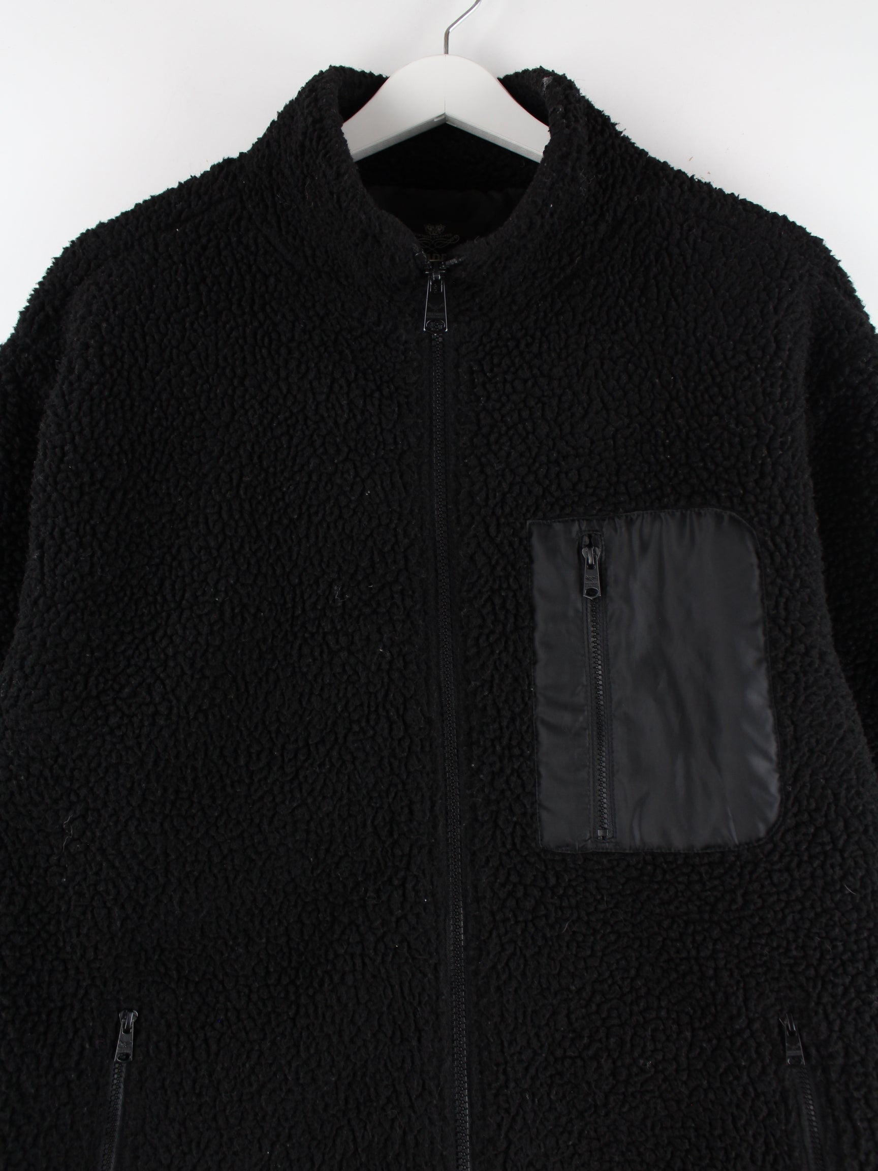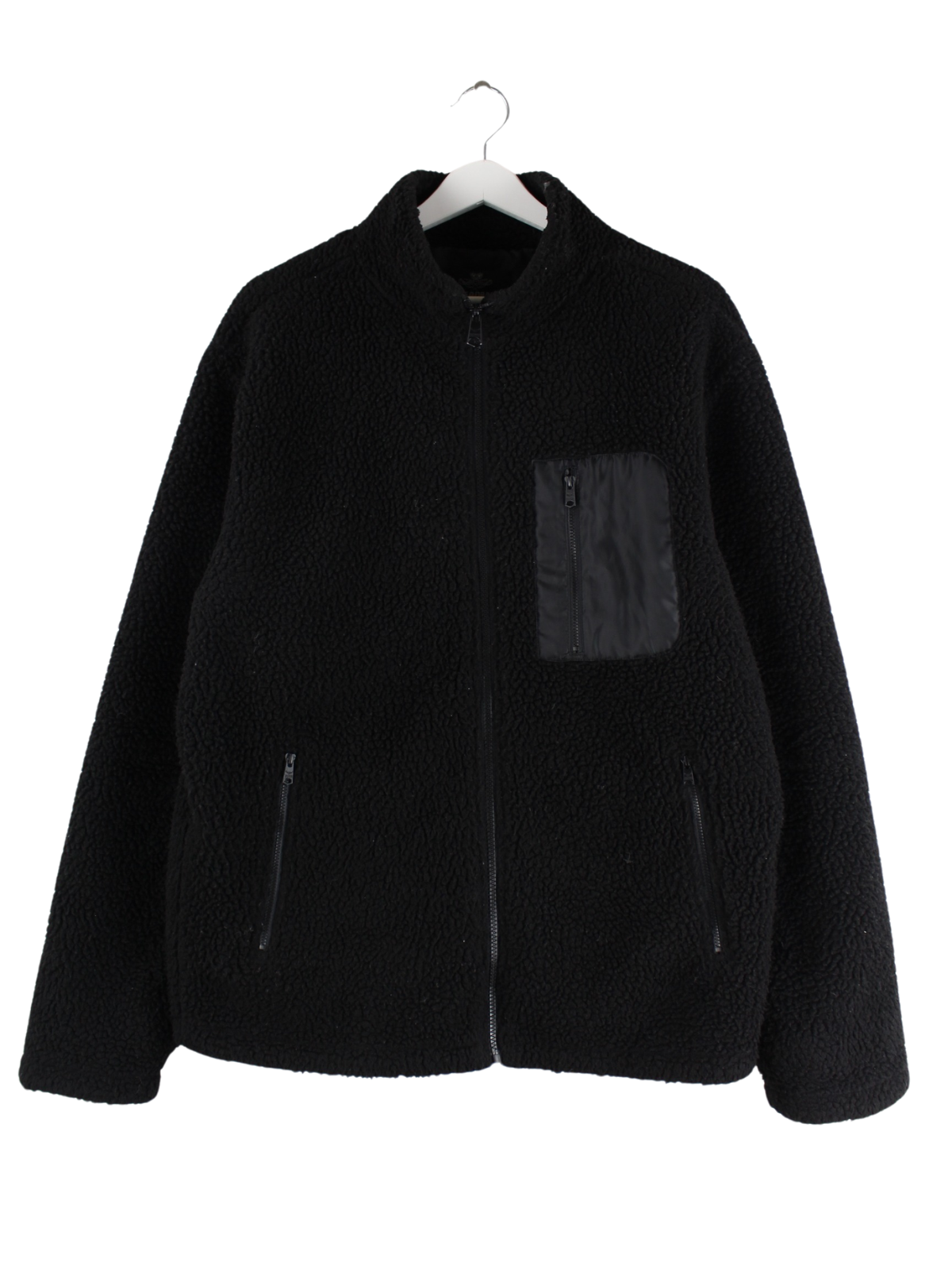 Vintage Teddy Fleece Jacke in Größe M. Sie ist aus kuscheligem Fleece gefertigt und in Schwarz bei uns vorrätig.