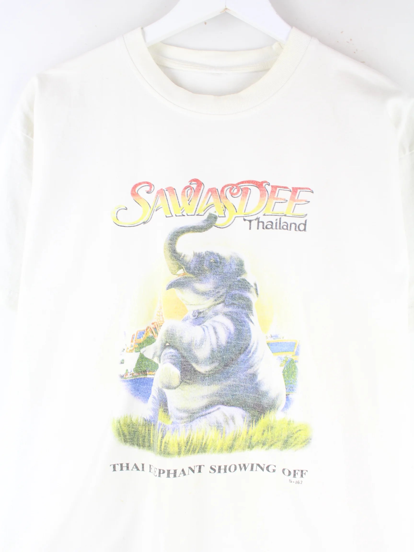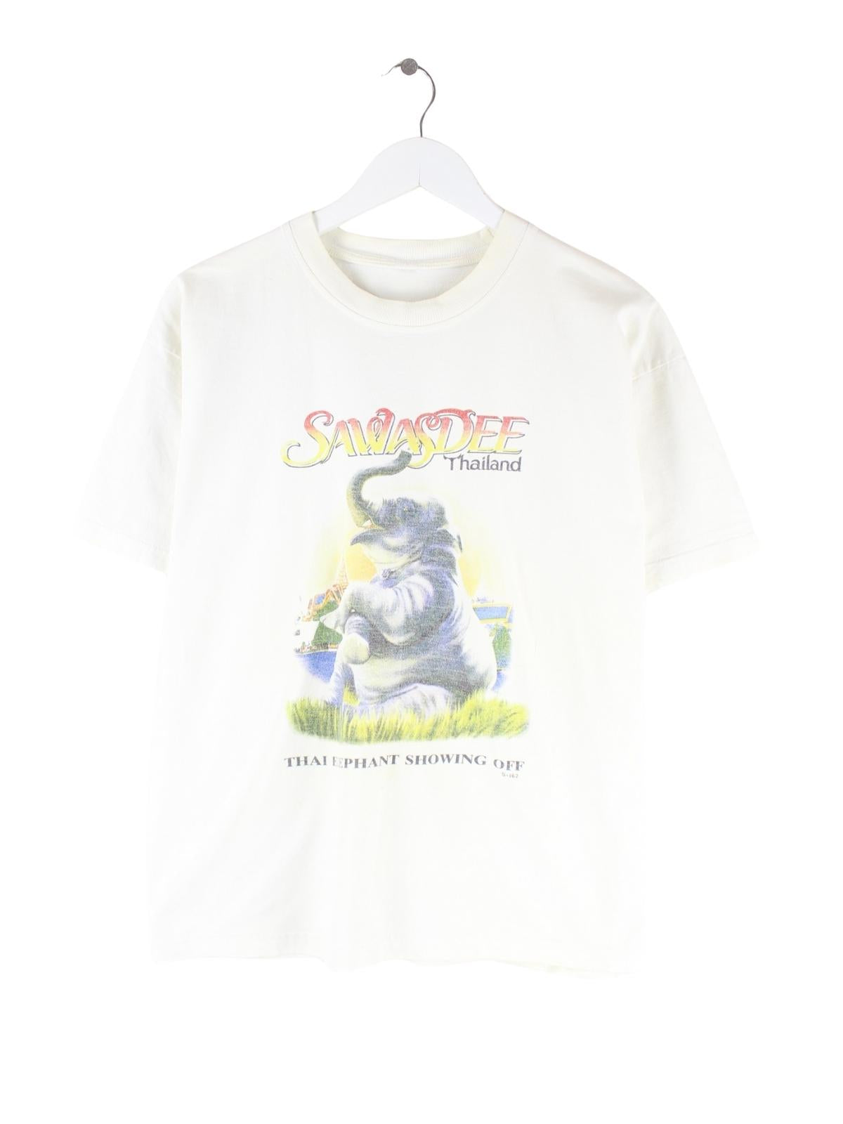 Vintage Thailand Elephant Print T-Shirt Weiß L