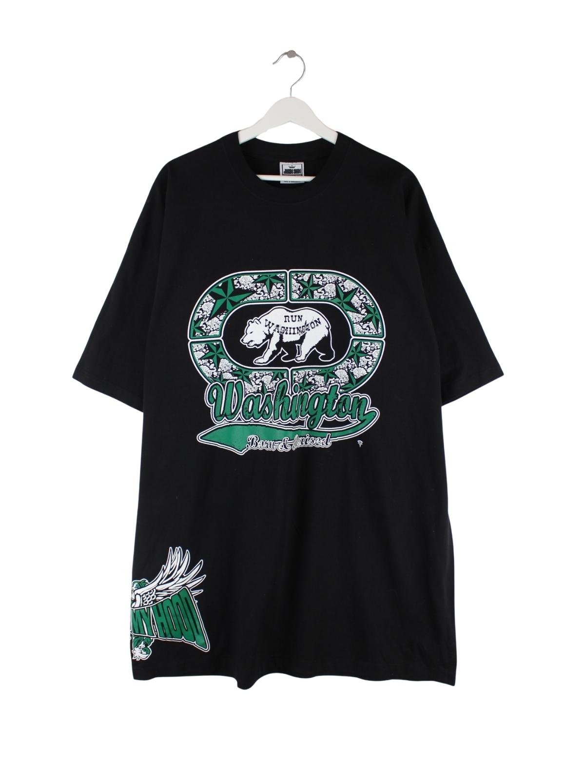 Schwarzes Vintage T-Shirt in Größe 4XL. Es ist aus Baumwolle und in sehr gutem Zustand vorrätig. Mit tollem Washington Print.