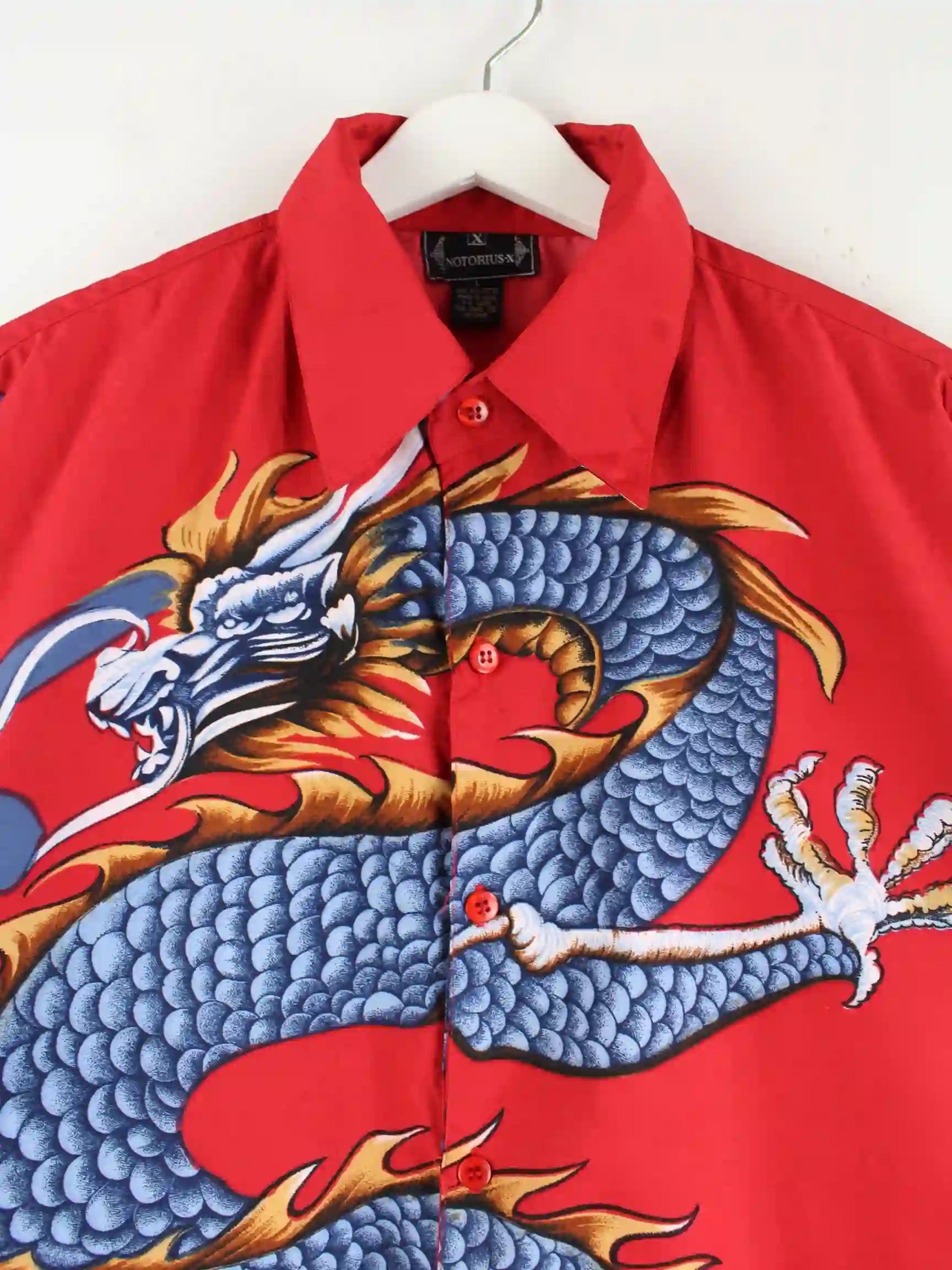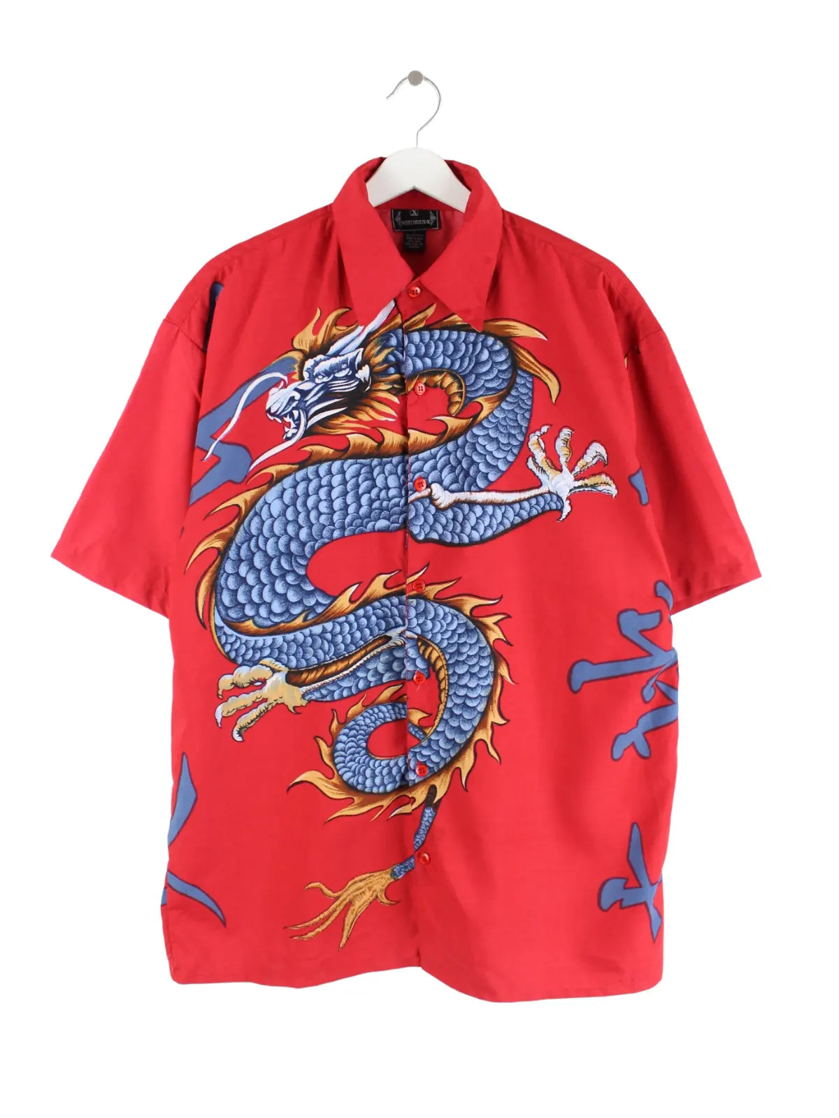 Vintage y2k Dragon Kurzarm Hemd Rot L