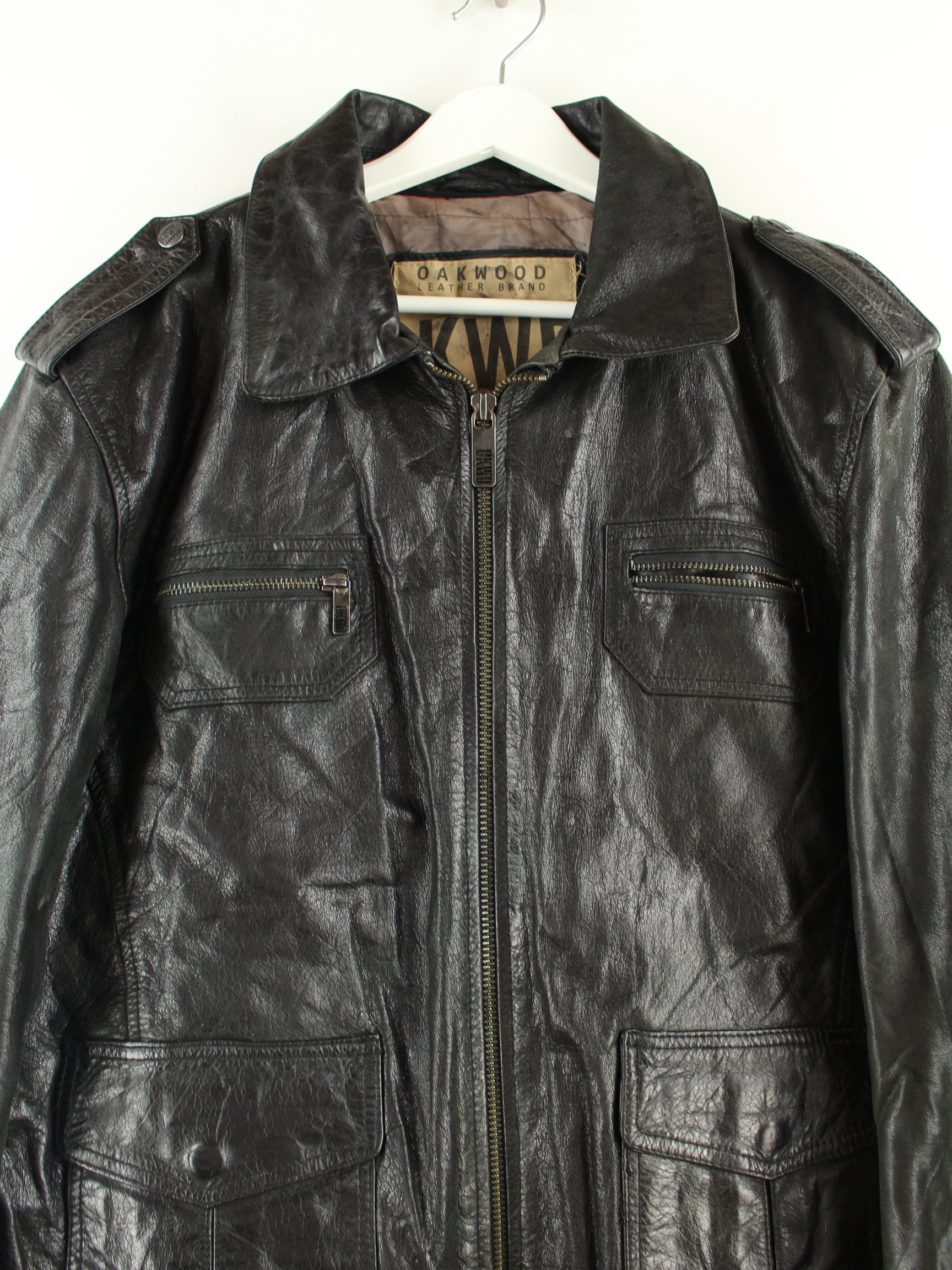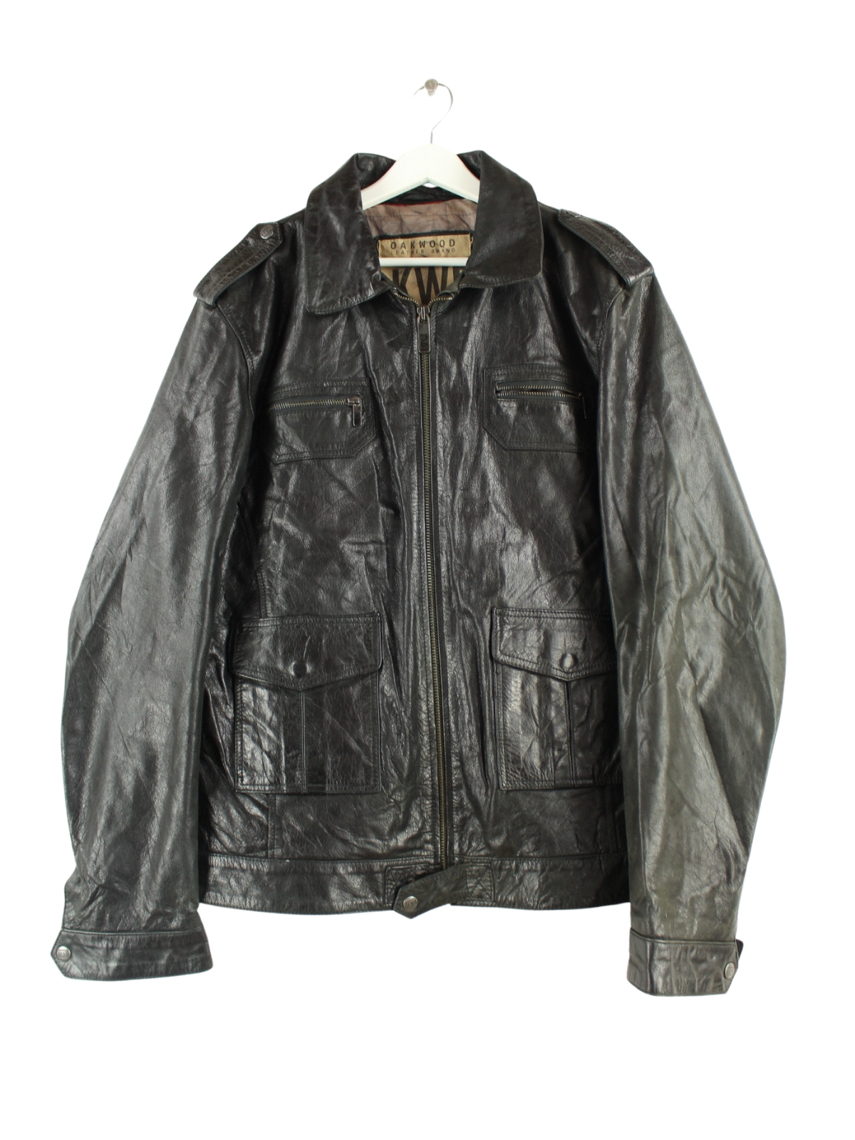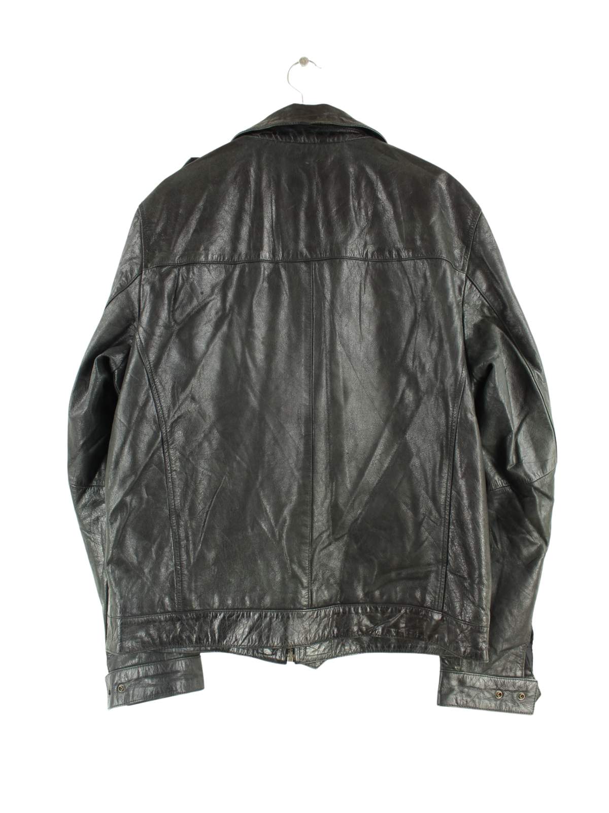 Vintage Jacke in Größe XL aus Anfang der 2000'er. Sie ist aus Leder gefertigt und in Schwarz im Bestand.