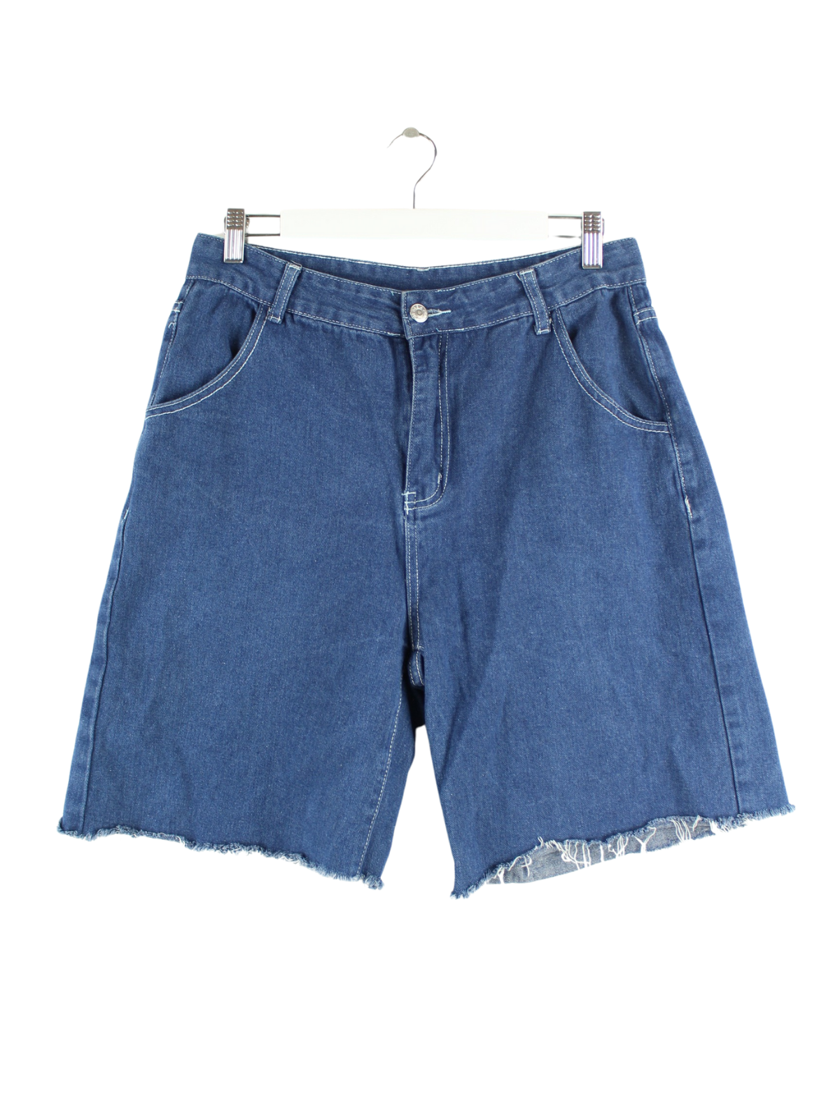 Blaue Vintage Shorts aus Anfang der 2000'er in Größe W28. Sie sind aus Baumwolle produziert und in sehr gutem Zustand bei uns zu bekommen. Mit Tolleem Yang Print.