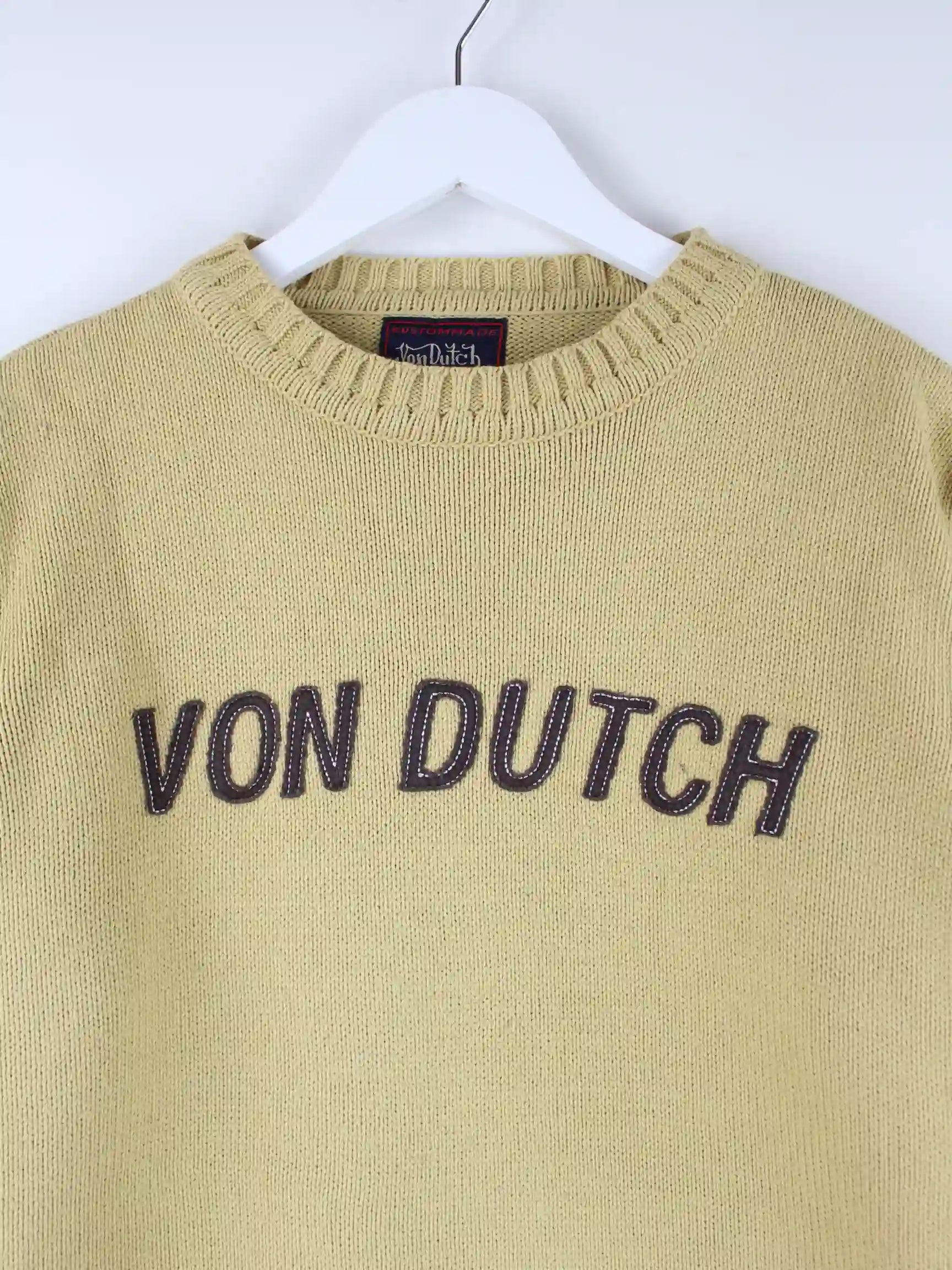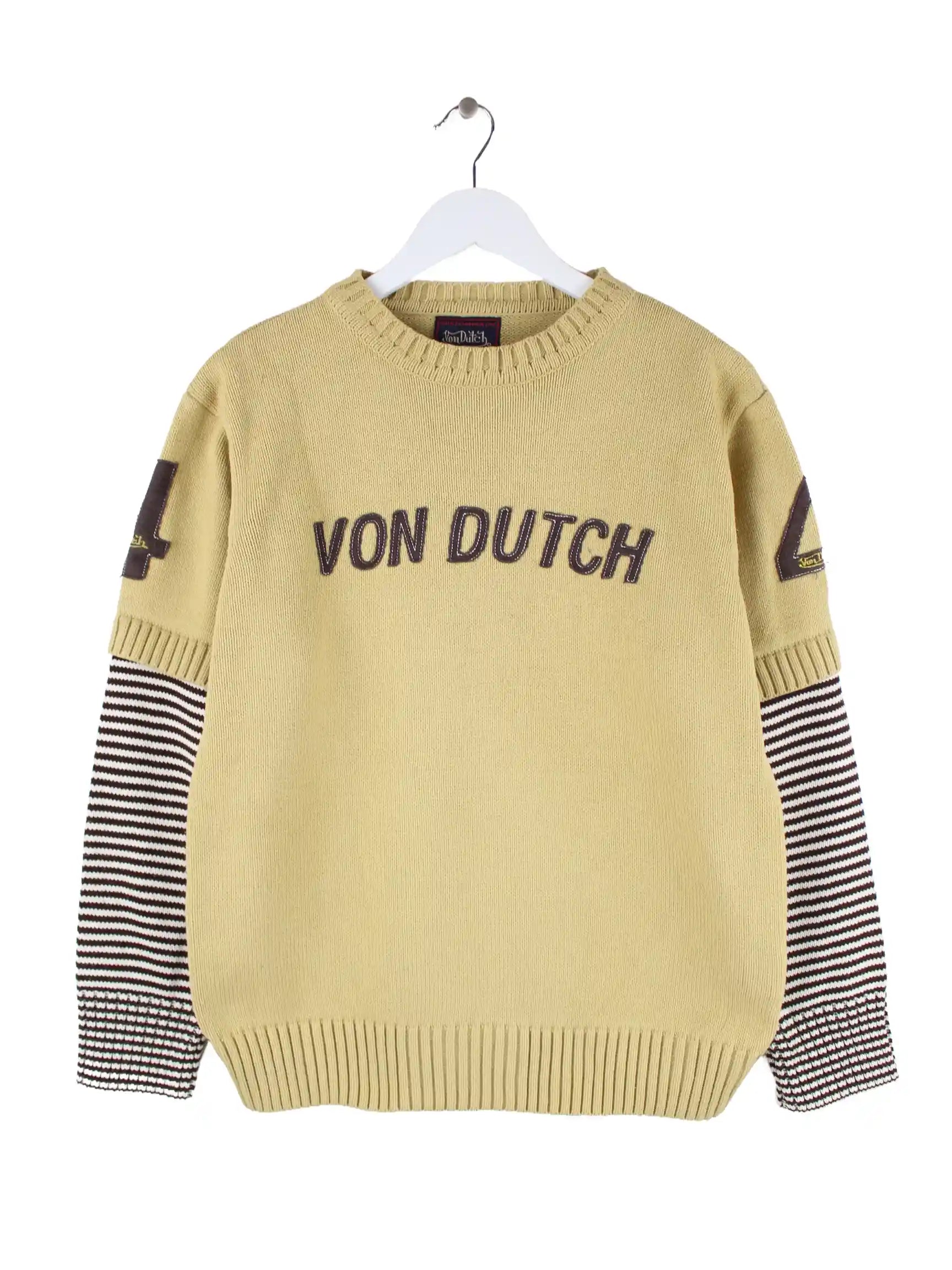 Beigefarbener Pullover aus dem Hause Von Dutch in Größe M. Er ist aus Baumwolle hergestellt und in sehr gutem Zustand auf Lager.