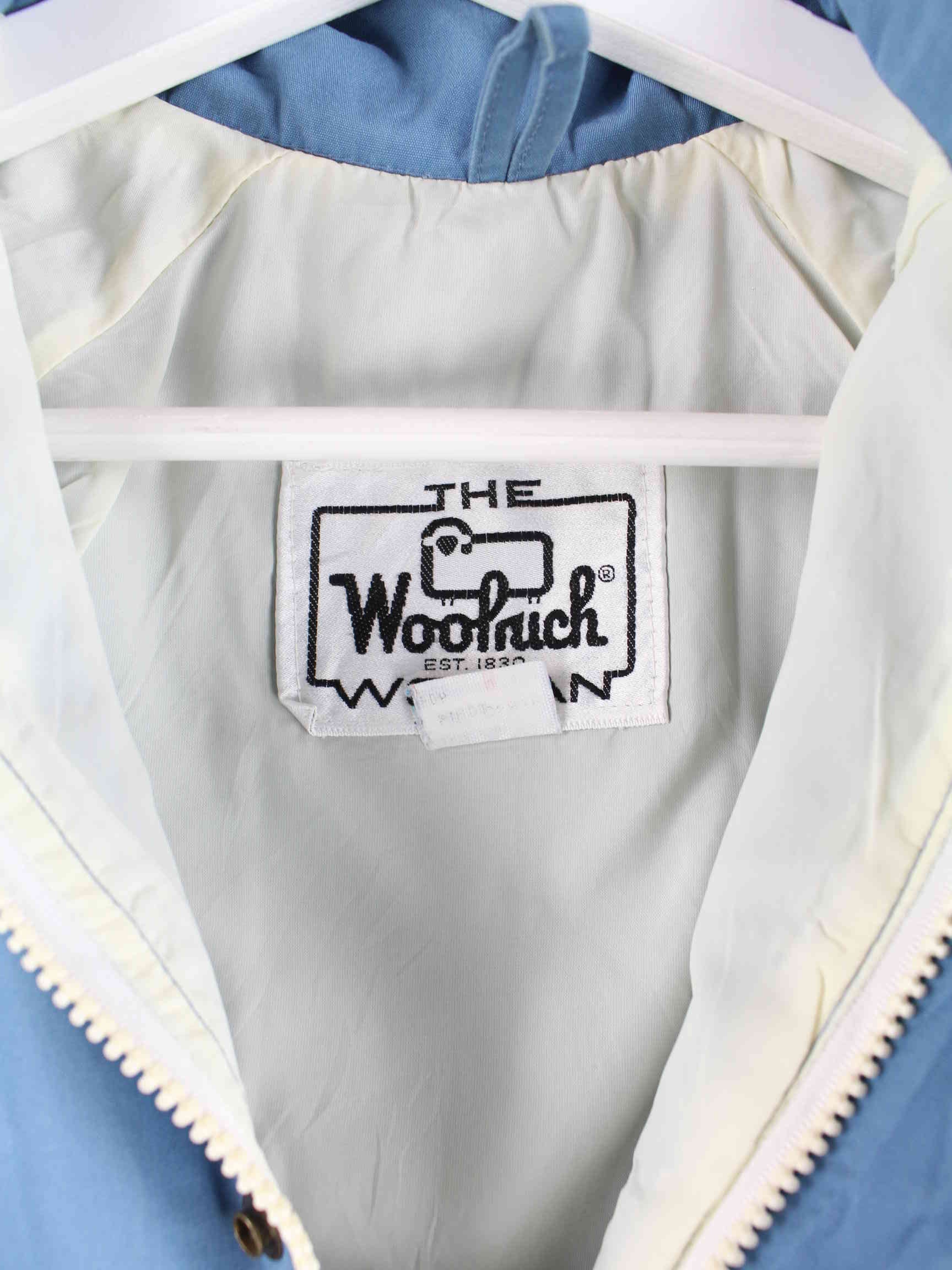 Blaue Leichte Jacke der Brand Woolrich aus den 90'ern in Größe M. Sie ist aus Synthetik angefertigt und in sehr gutem Zustand bei uns vorrätig.