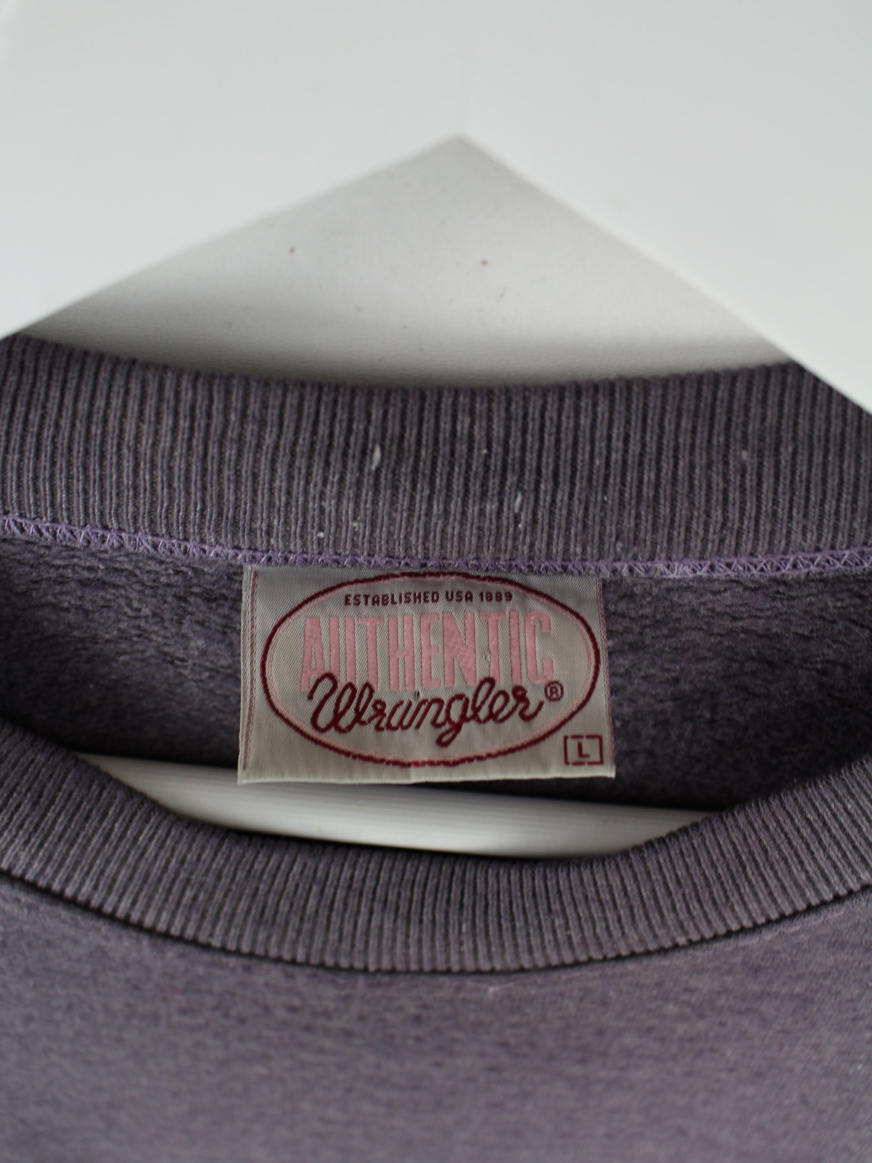 Grauer Sweater von Wrangler aus den 90'ern in Größe L. Er ist aus einer Baumwollmischung gefertigt und in gutem Zustand zu bekommen.