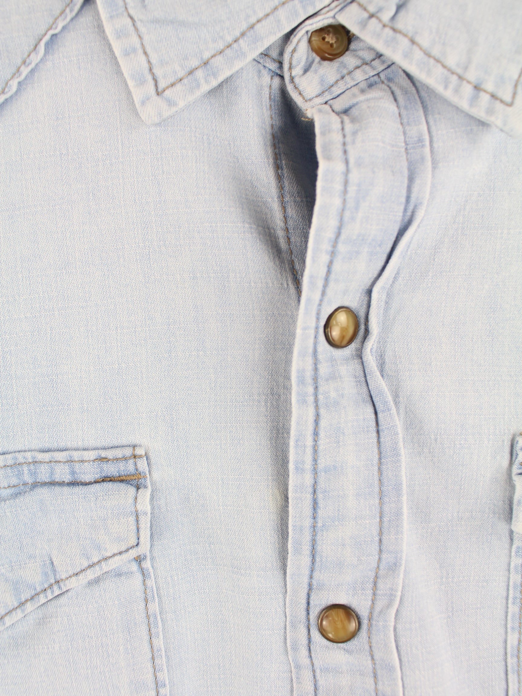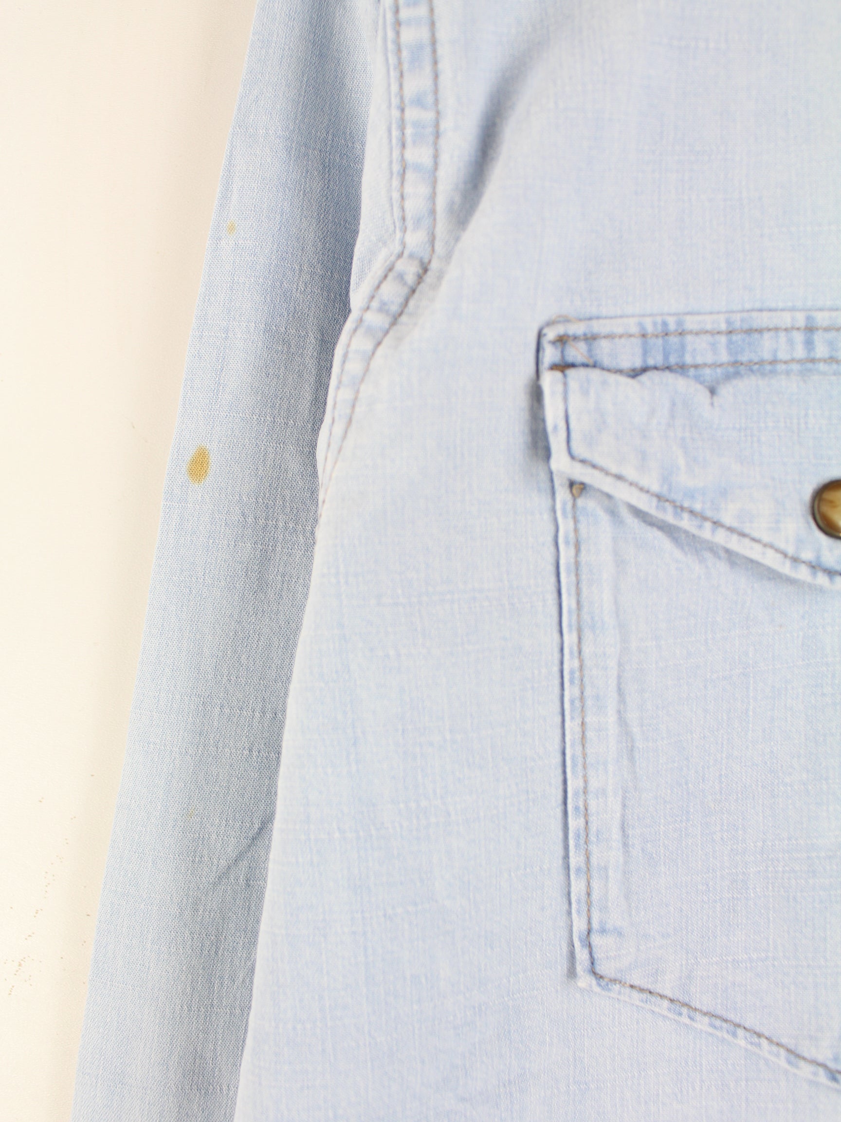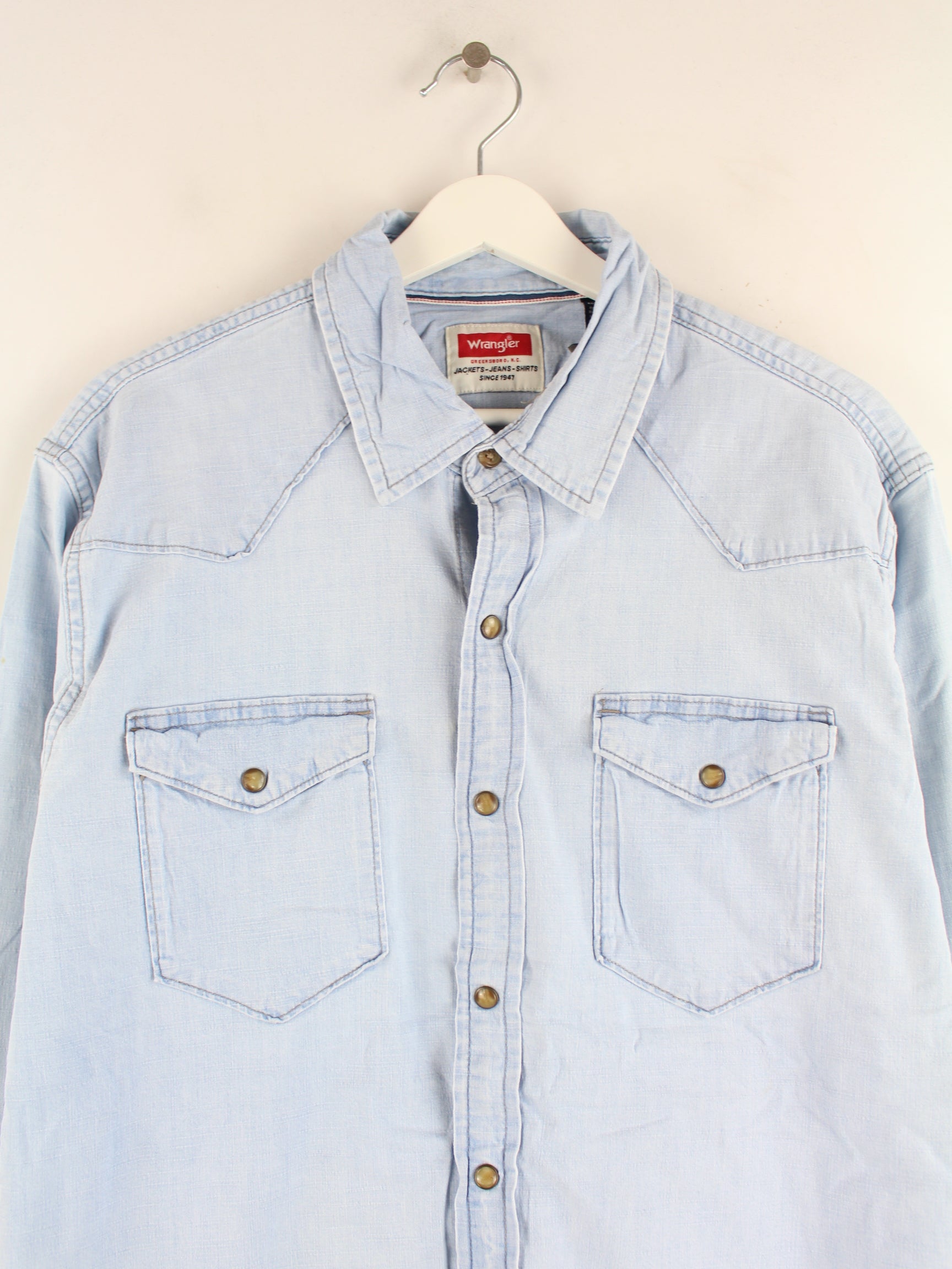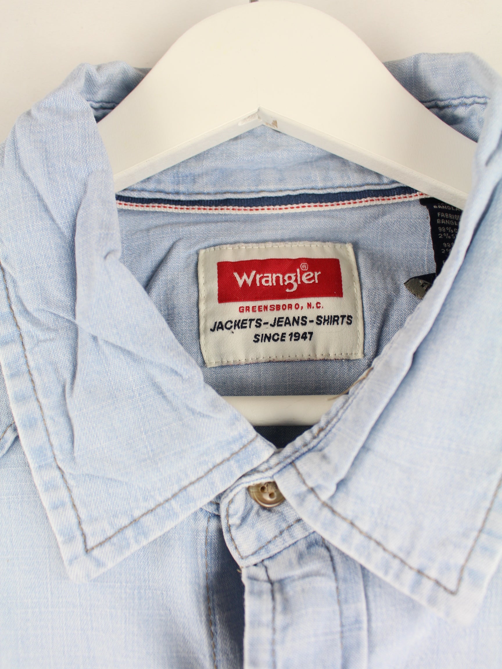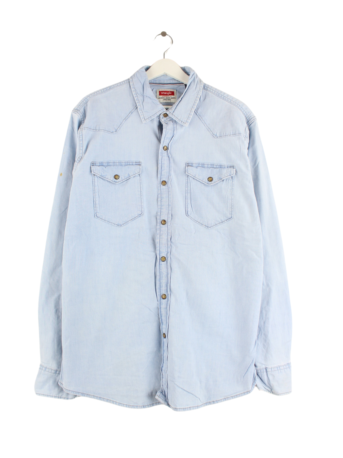 Freizeit Hemd der Marke Wrangler in Größe L. Es ist aus Baumwolle gefertigt und in Blau im Bestand.