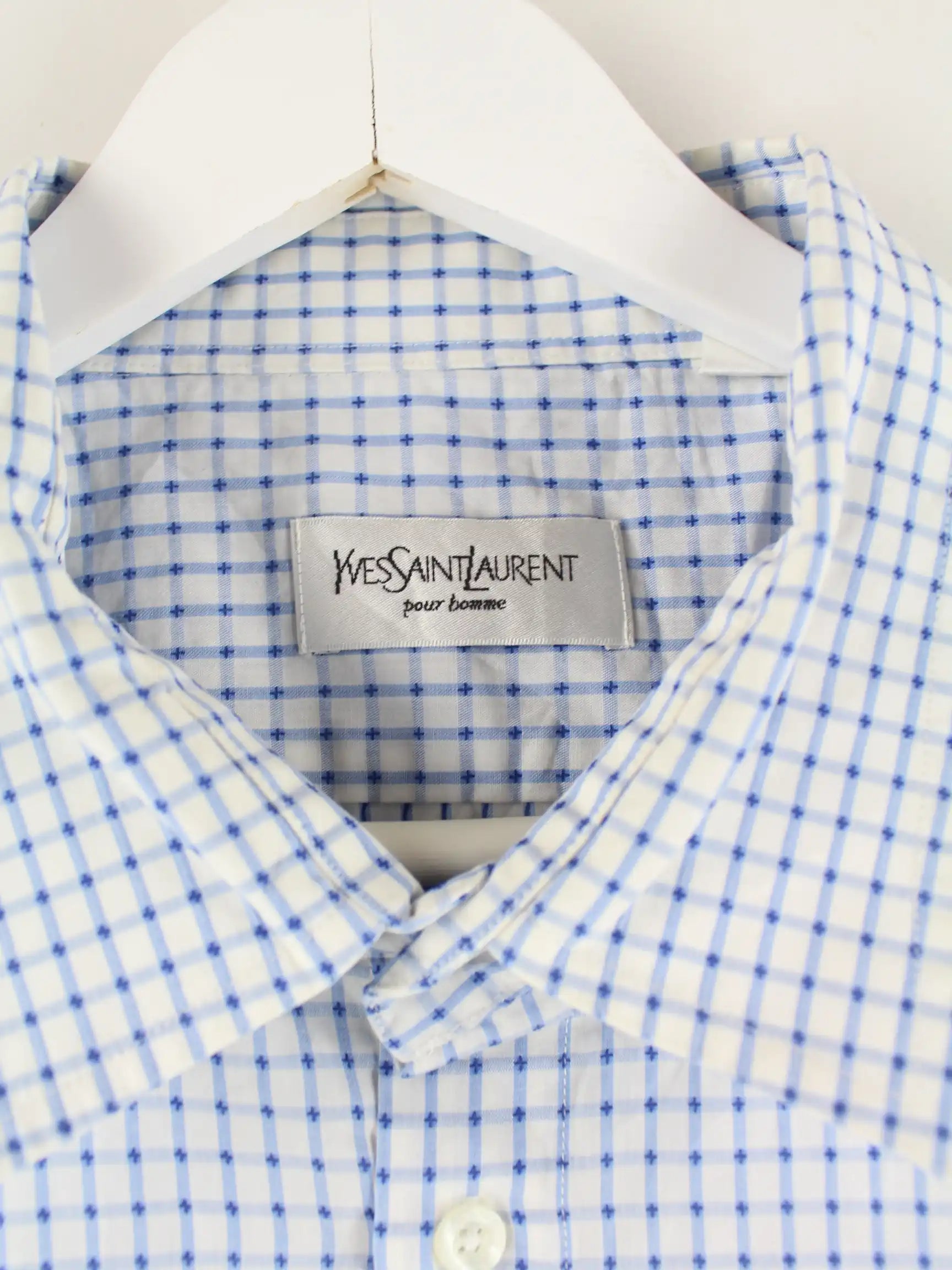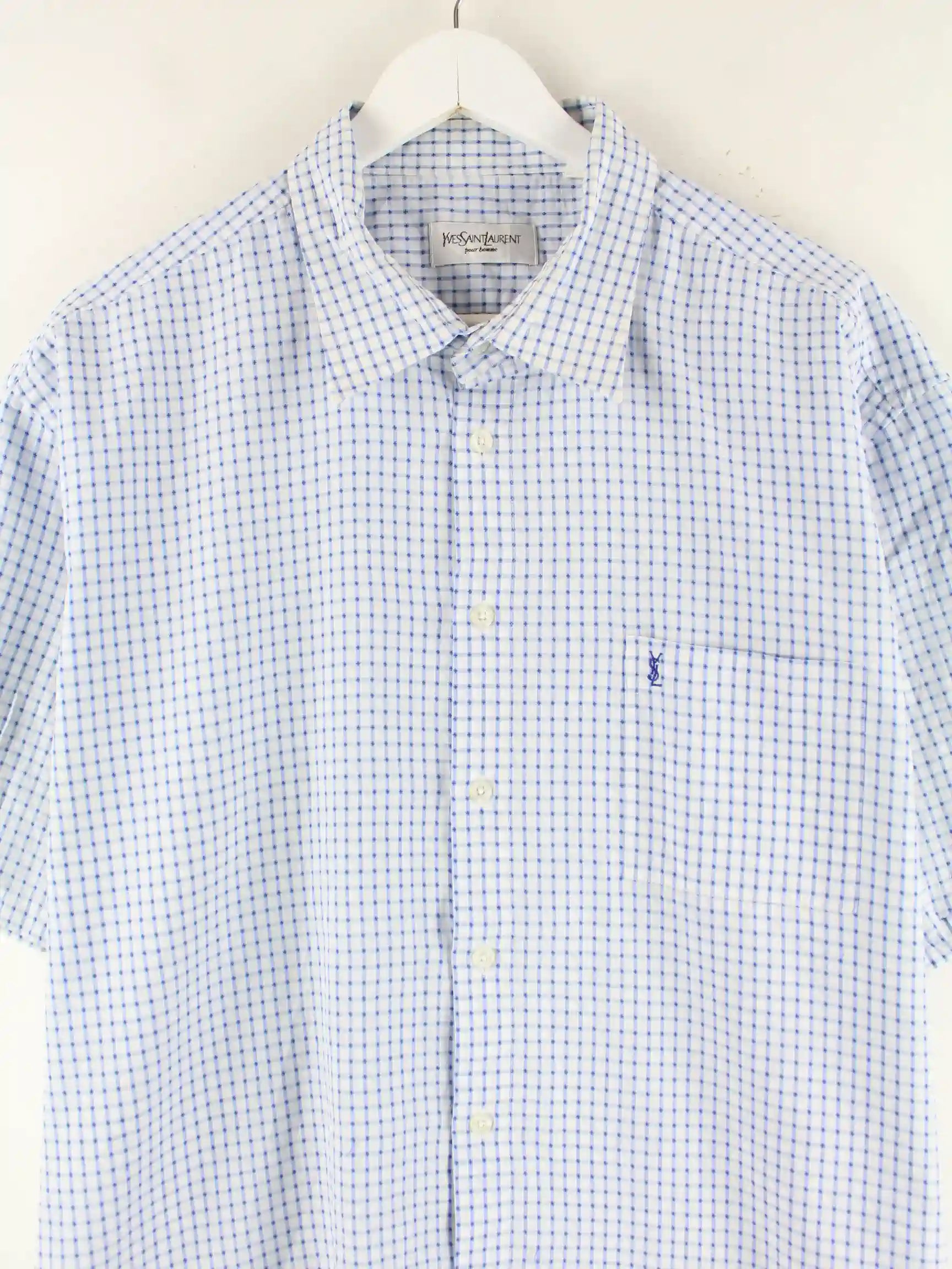 Blaues Freizeit Hemd der Marke Yves Saint Laurent aus den 90'ern in Größe XXL. Es ist aus Baumwolle produziert und in sehr gutem Zustand im Bestand.